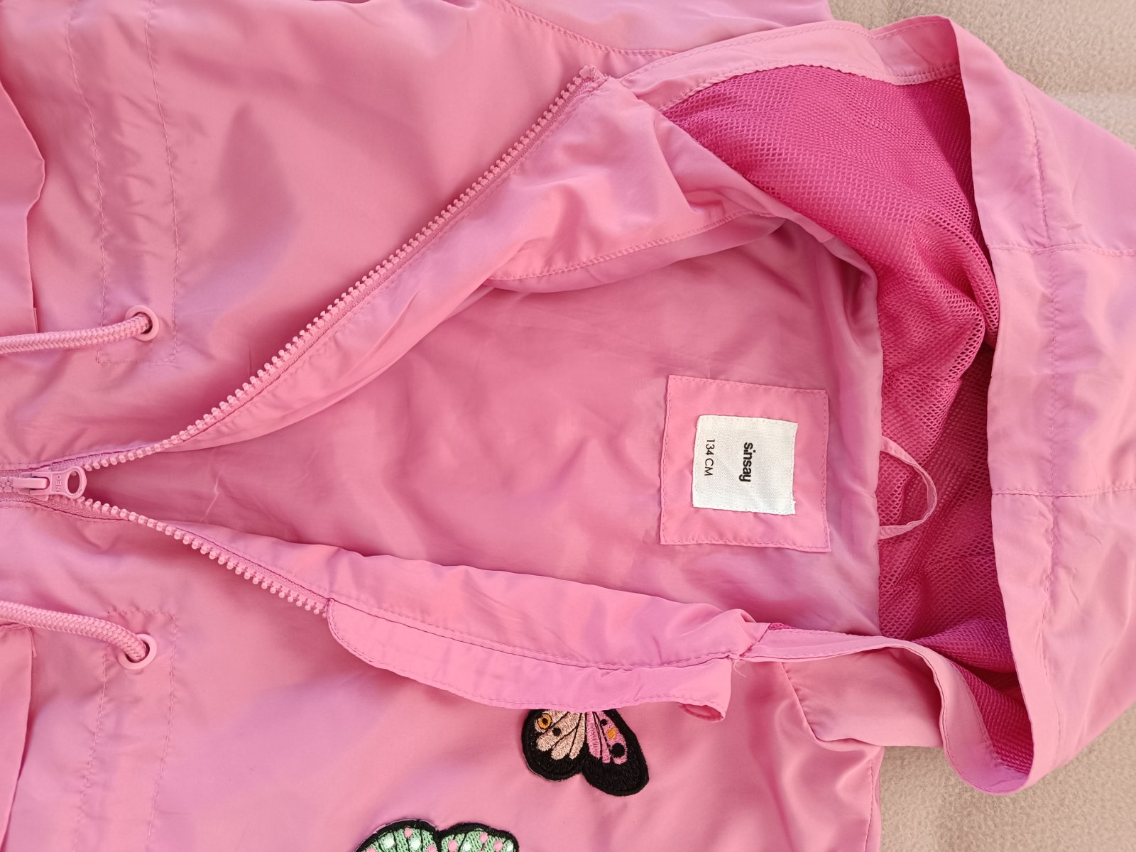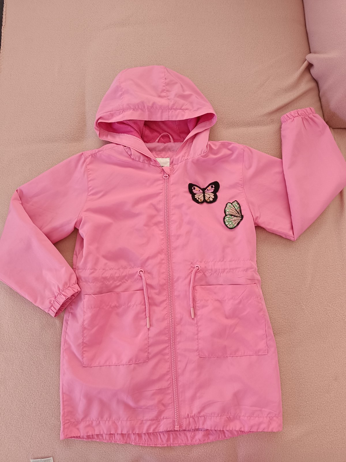 Predám tenký šustiakový kabátik, podšitý tenkým úpletom. Rozmery: dĺžka:58 cm šírka: 41 cm rukáv: 47 cm rukáv od krku: 60 cm