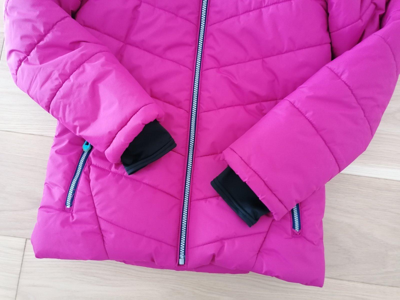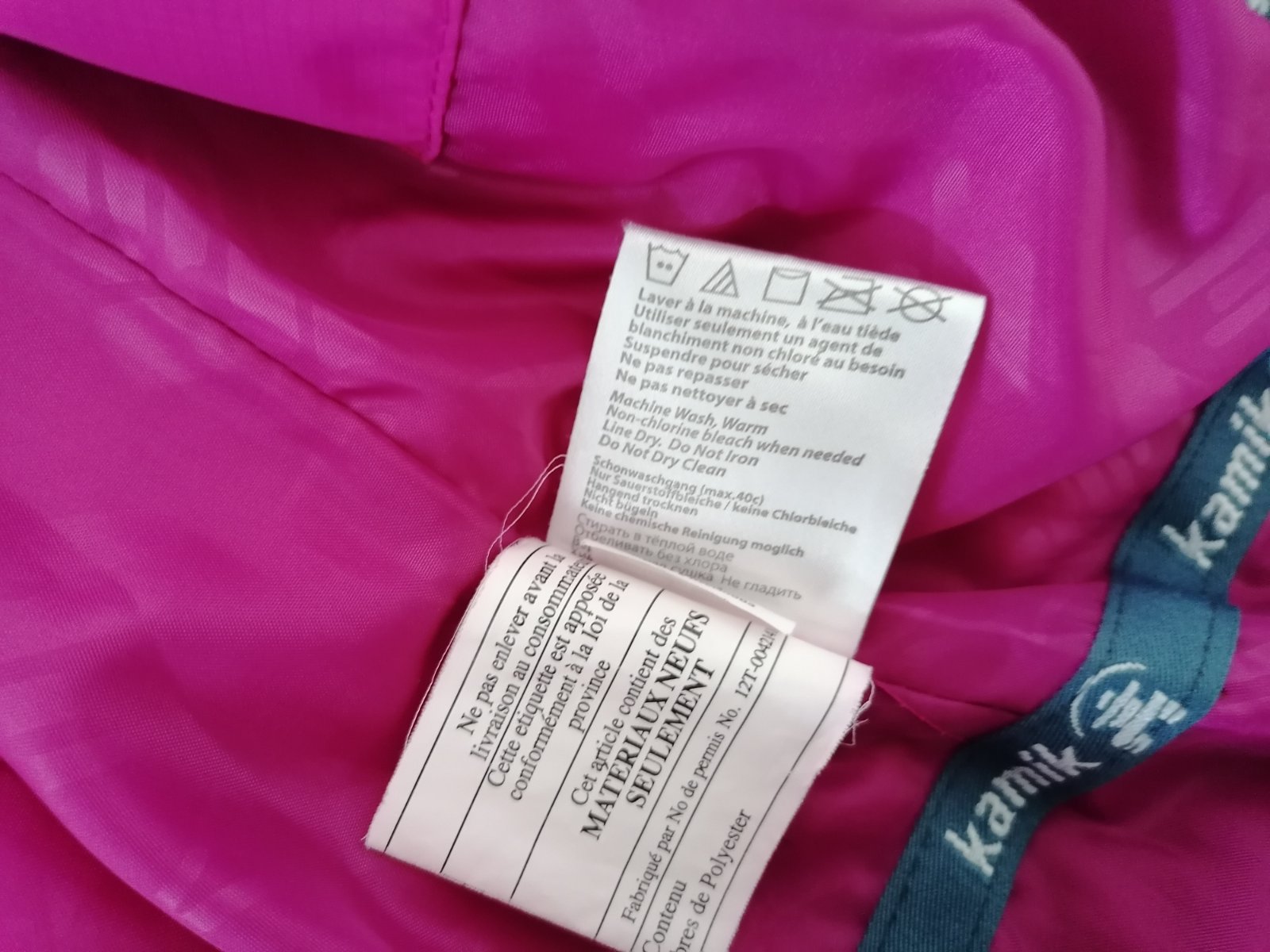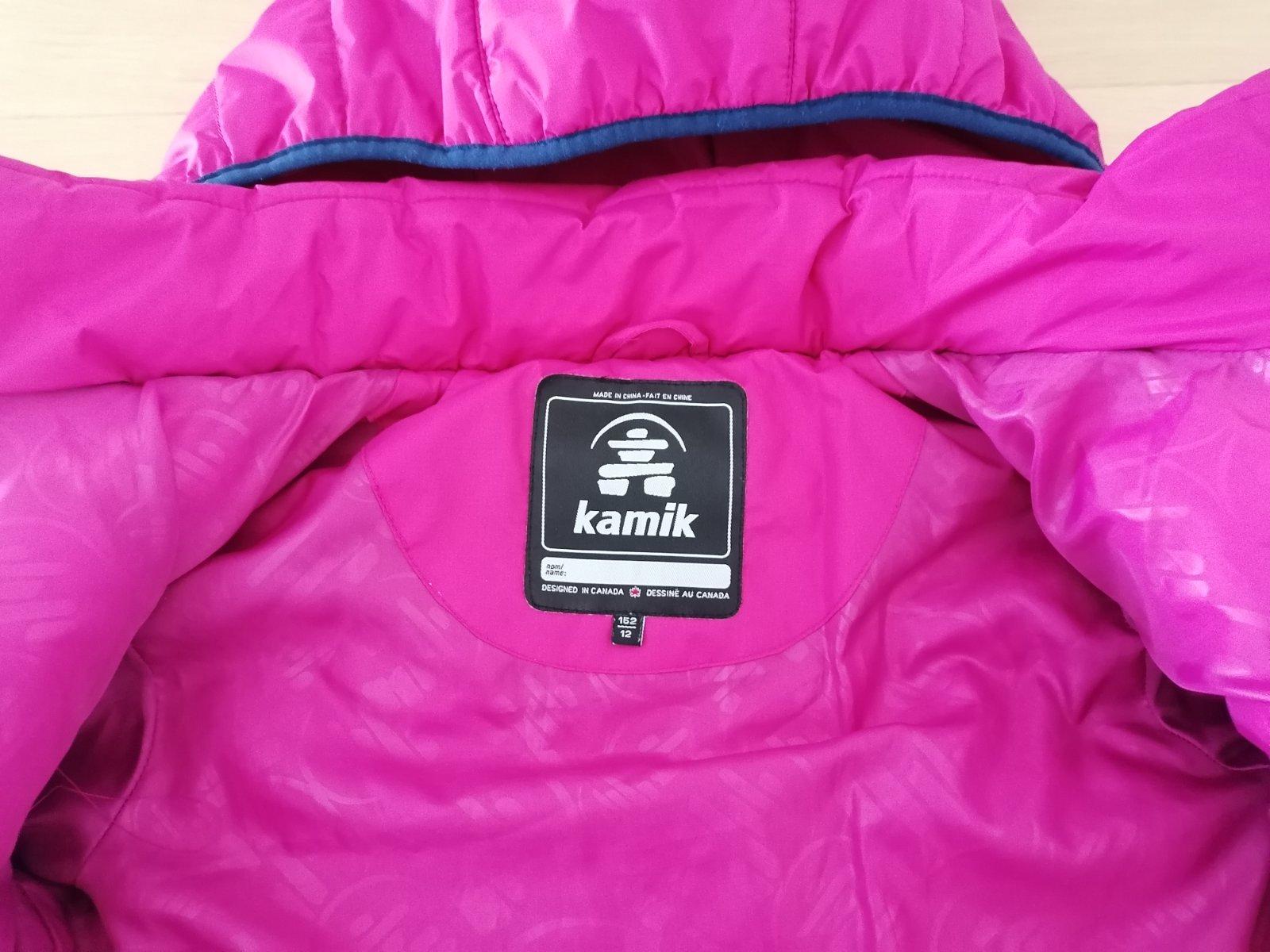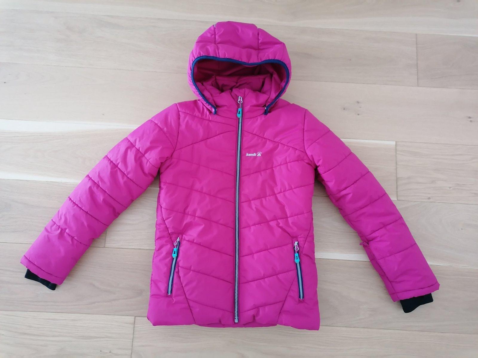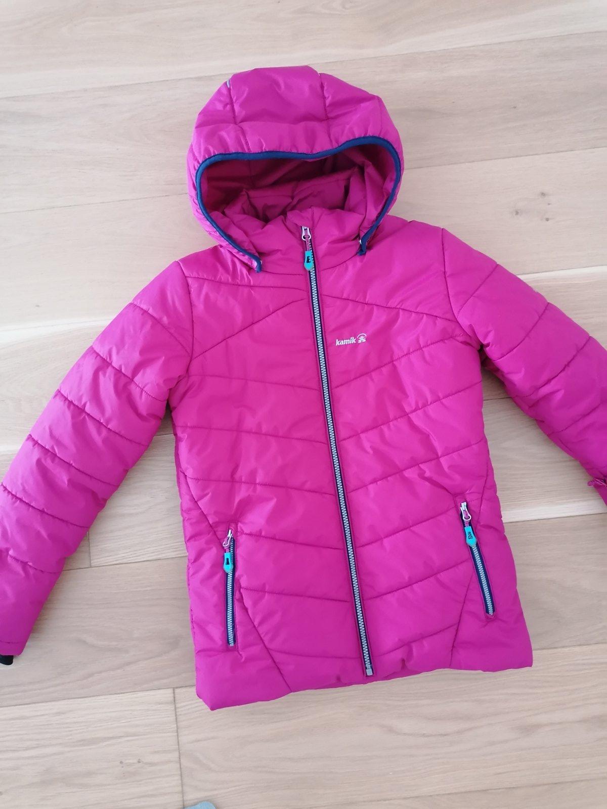 Kvalitná zimná bunda zn. Kamik, veľ. 152, vpredu dve vrecká na zips, vrecko na zips na rukáve, vnútorné vrecko, snežný pás, odopínateľná kapucňa.