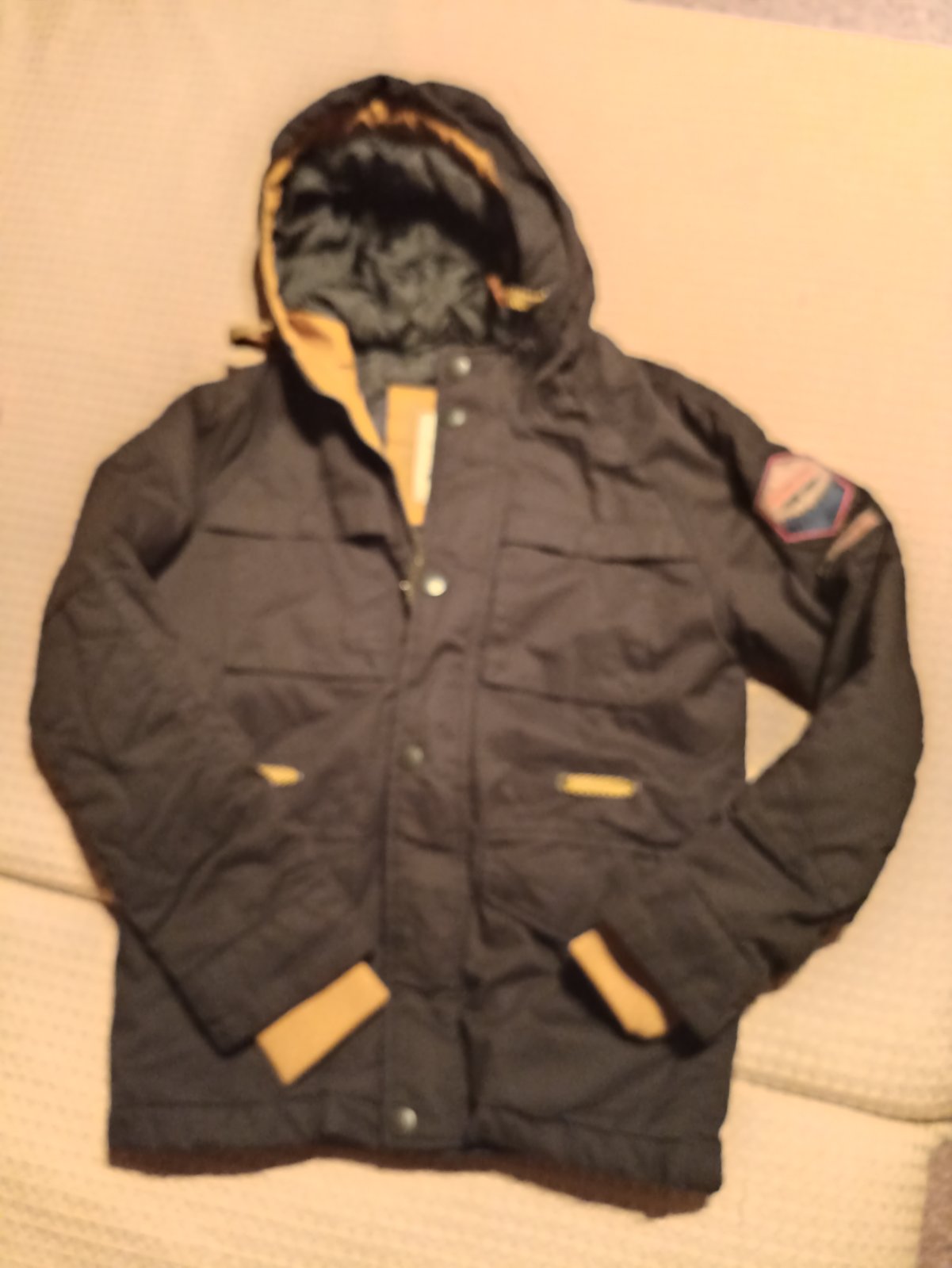 Predám chlapčenskú zimnú bundu. Je čiernej farby v kombinácii s hnedou. Má kapucňu. Vpredu štyri vrecká a jedno vnútorné. V páse má šnúrku, takže sa dá trochu stiahnuť. Materiál 100% bavlna