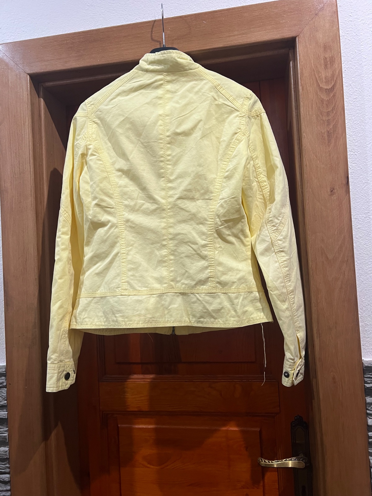 Nieje a taká kriklava, je taká pekné žltá ☺️vačky na zips, nosená v krásnom stave, vnútro menší kúsok zašite, začalo sa parať je to v pohode nevidno to nejak len keď pozriete lepšie Nebráni noseniu...