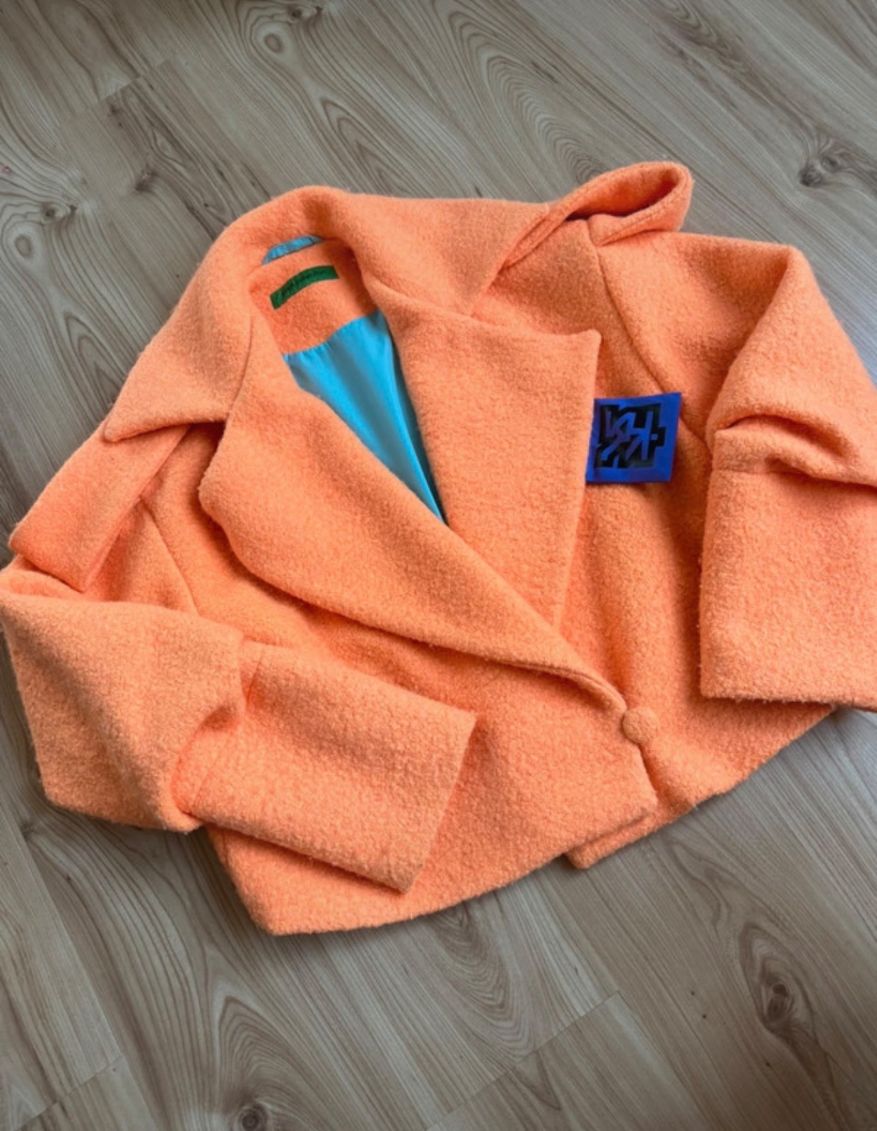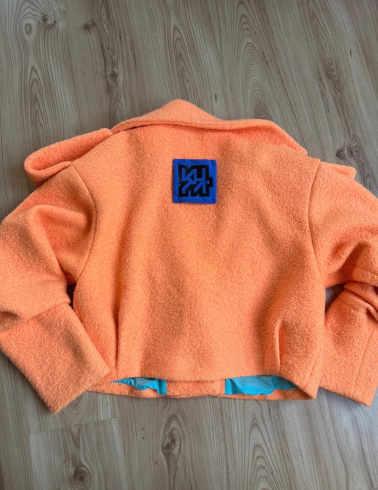 Oranžové predĺžené sako na gombík. Sedí na M a L.