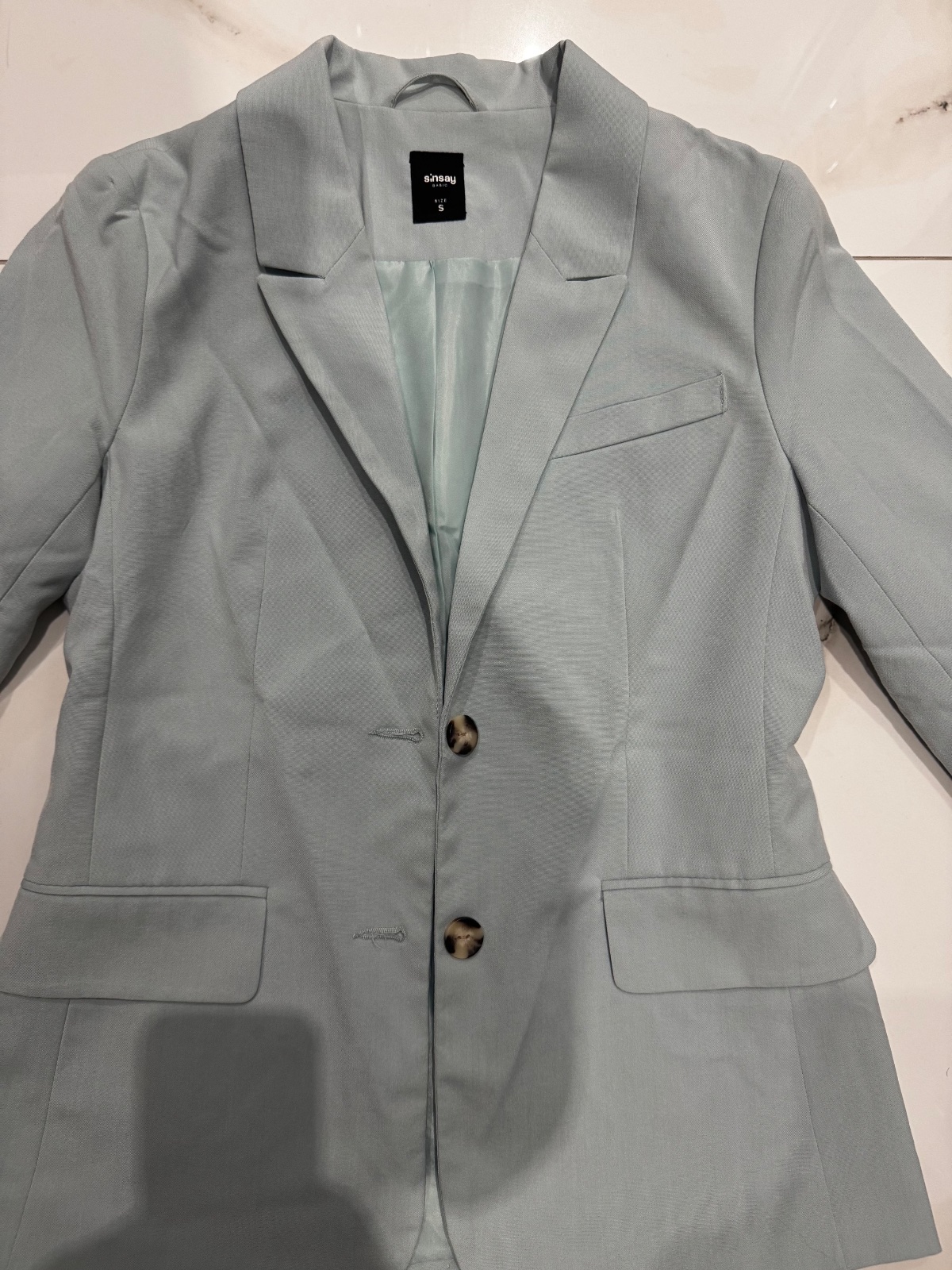Tmavomodry kabat Sinsay, nenoseny novy este s vysackami. Velkost S - 36, rozmery vo fotkach. Povedala by som, ze tensi, prechodny. Zapinanie na 3 gombiky, vrecka, hladka podsivka. Pov. cena 29,99 e.
