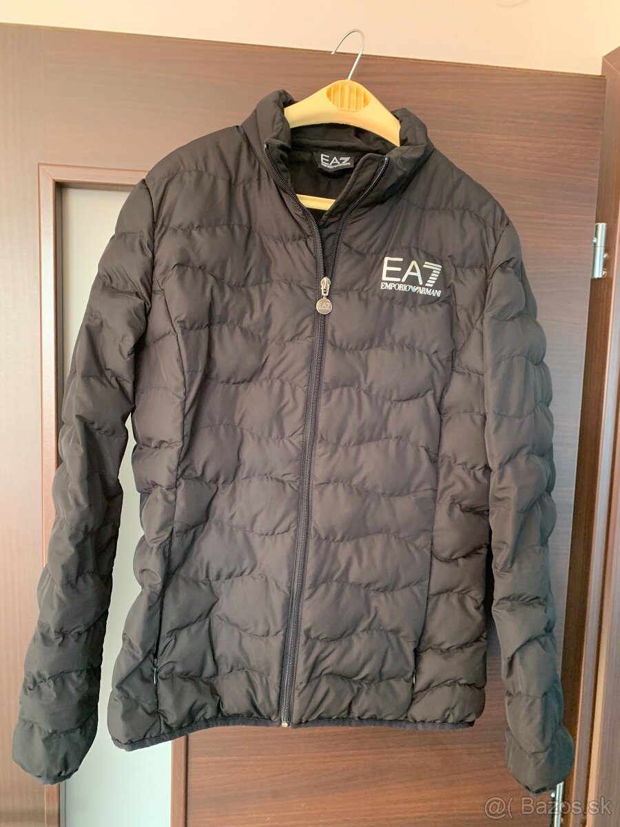 Prechodna bunda Emporio Armani. Nosena v dobrom stave. Rozmery prsia 53x2 cm, dlzka 67 cm, rukav od krku 71 cm. Velkost XL. Farba cierna, ako na uvodnej fotke, zle sa foti. Logo strieborne. PC: 149 €. Postovne 4 €.