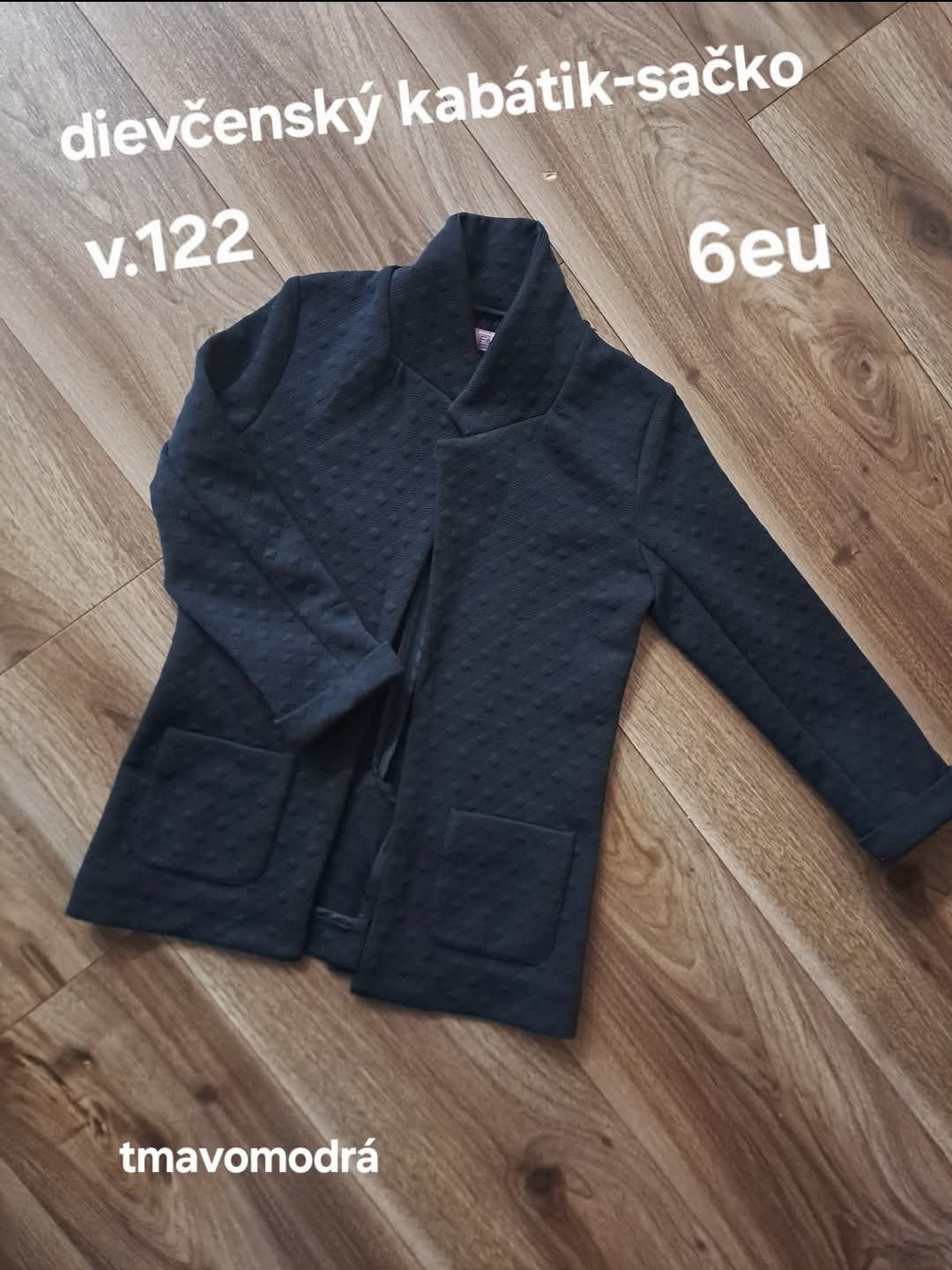 Úžasné sačko akoby z pevnejšej teplakoviny.uzsi strih, krásne ukáže k nohaviciam, leginam i sukničke.bez poškodení. Na 1 z visaciek ma veľkosť 128,na druhej 122. Je tak niečo medzi..