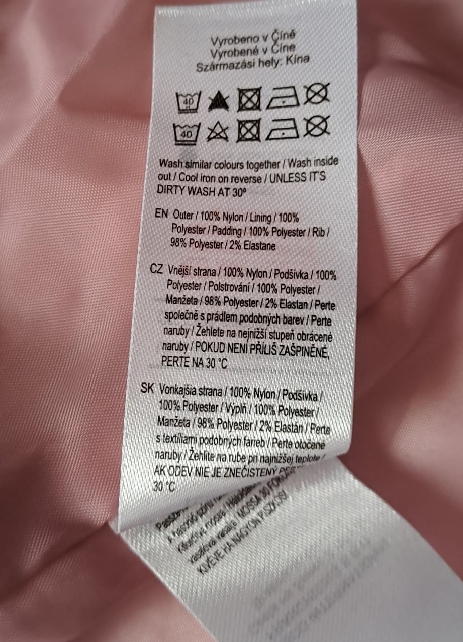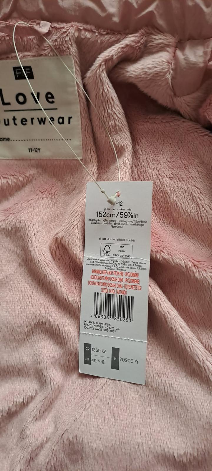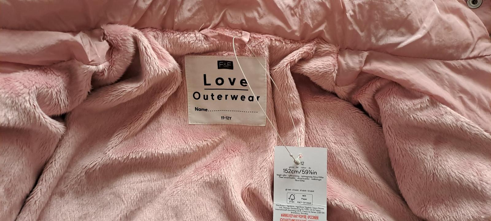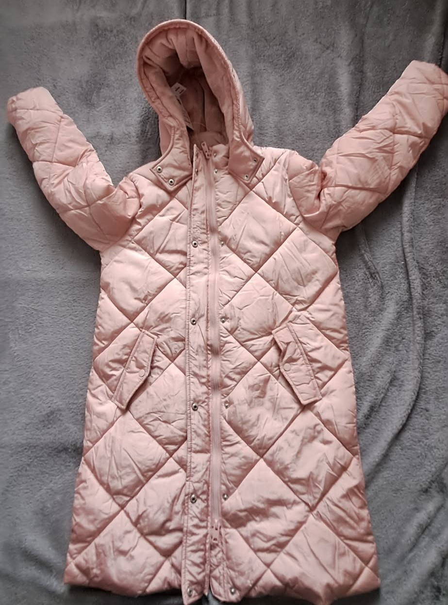 Nová , veľmi pekná , hrejivá prešívaná bunda, vo vrchnej polovici a kapucni ešte zateplená, niečo ako mikroplyš. Príjemná ružová farba, zips otvárateľný aj zdola, 2 vonkajšie uzatvárateľné vrecká, jedno vnútorné, rukávy ukončené patentom - zabraňuje úniku tepla.