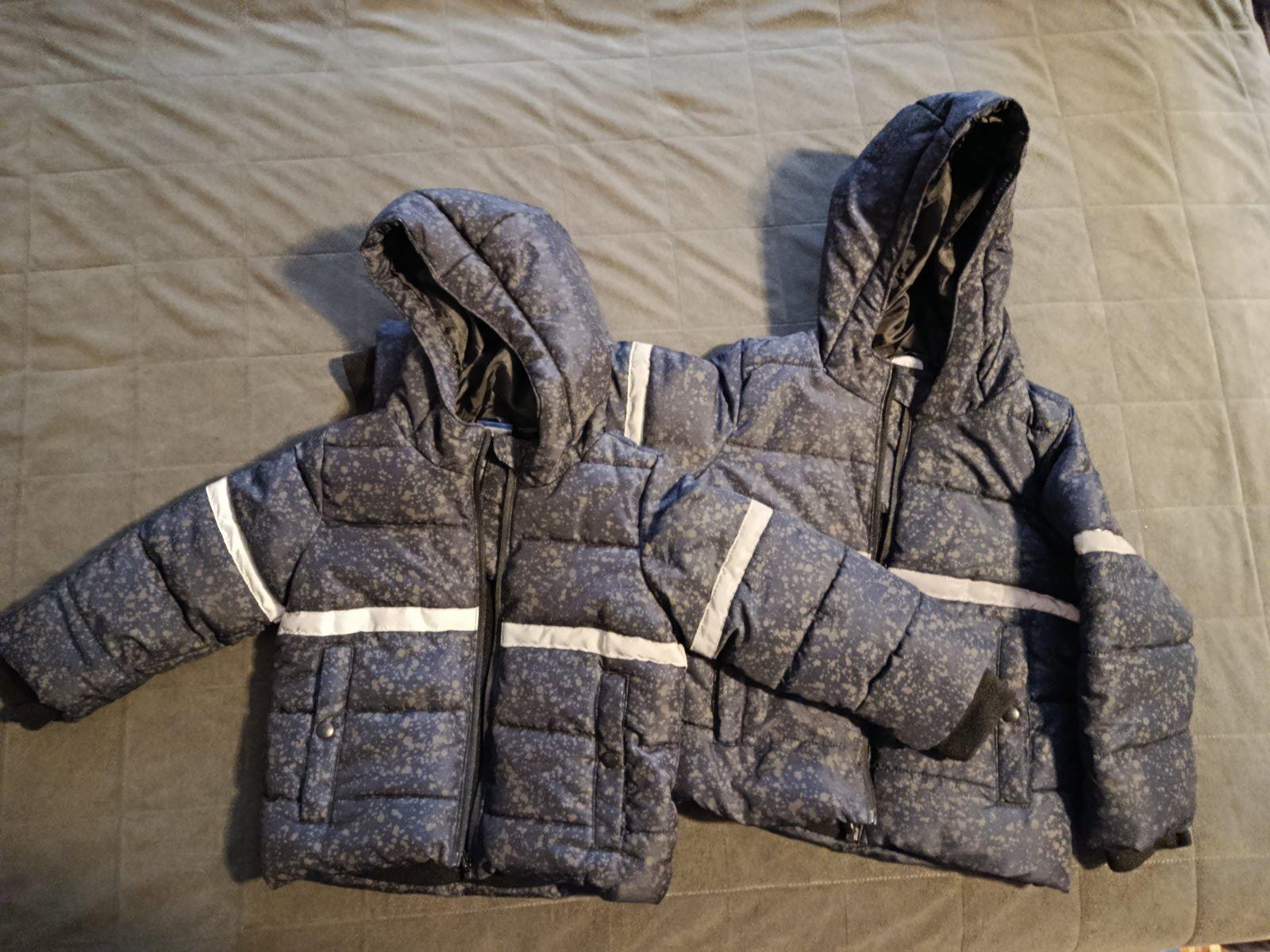 Zimné bundy, nosené, bez poškodení, s reflexnými prvkami.