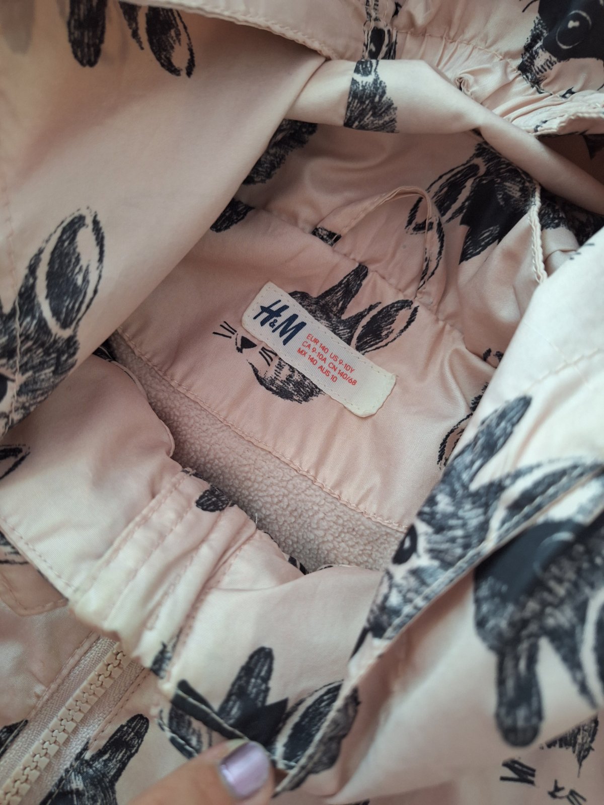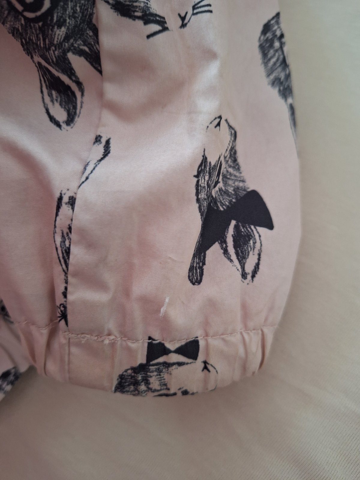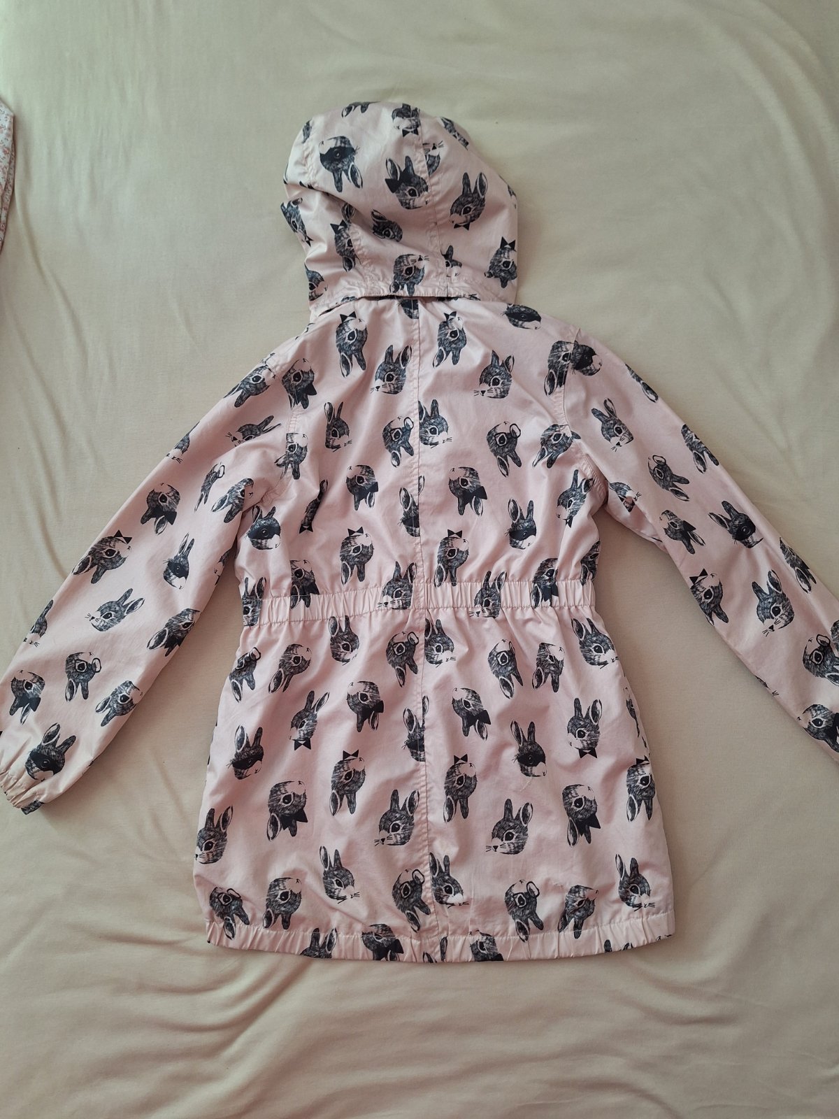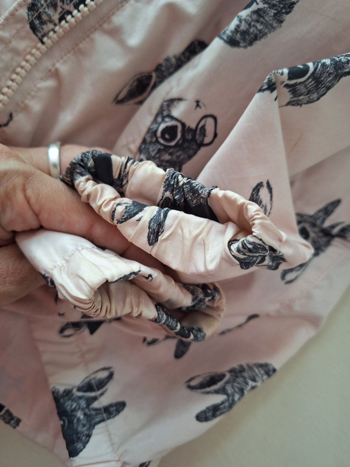 Predám peknú používanú bundicku, ruzovokremovej farby do polovice zateplena flisom. Je v peknom stave,len ma 3 zadretia,zatiahnutia a dierky.. jedna na rukave a zo zadu dve z chrbata bundicky od smykacky. Všetko nafotene na poslednych fotkach.