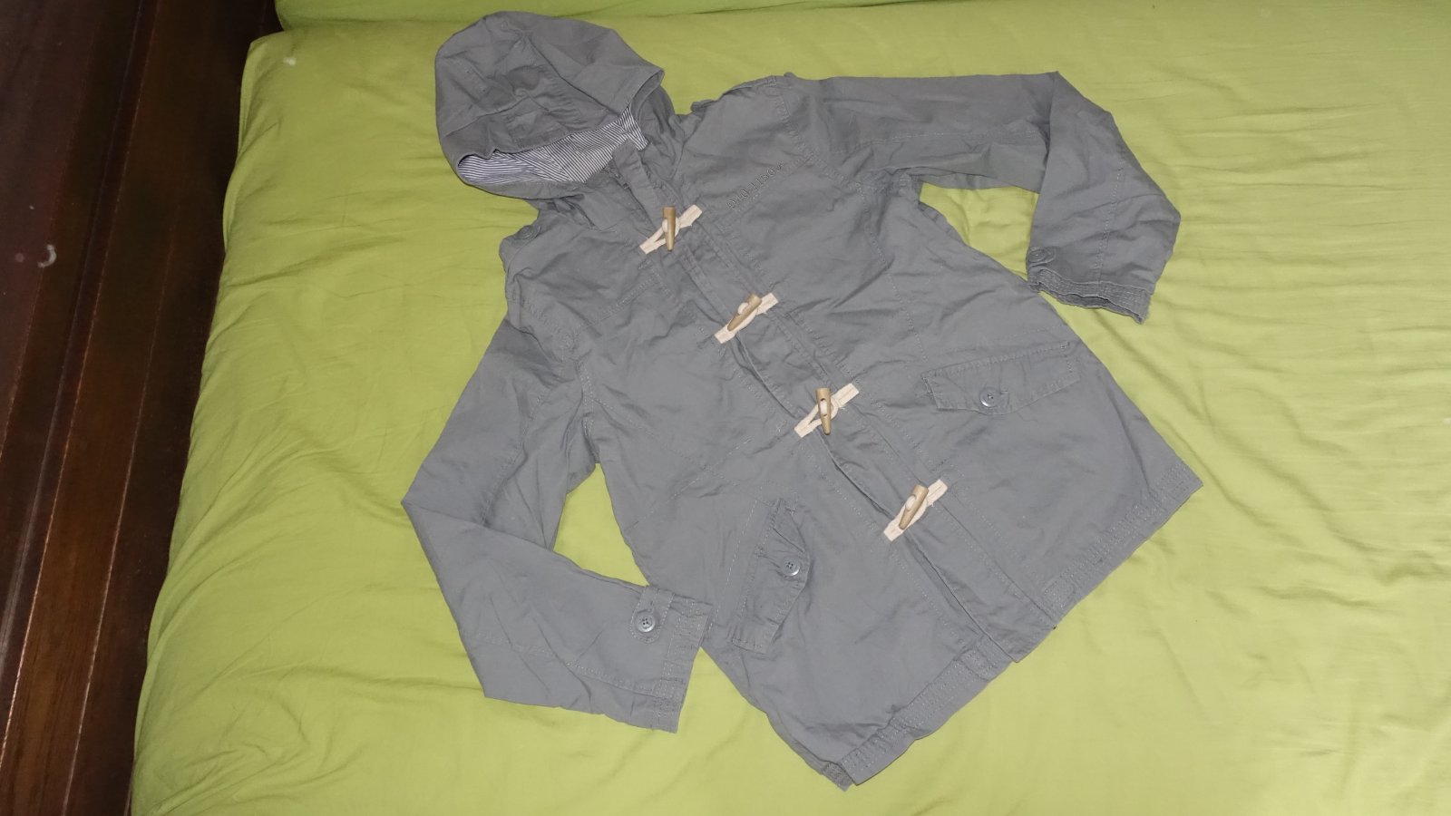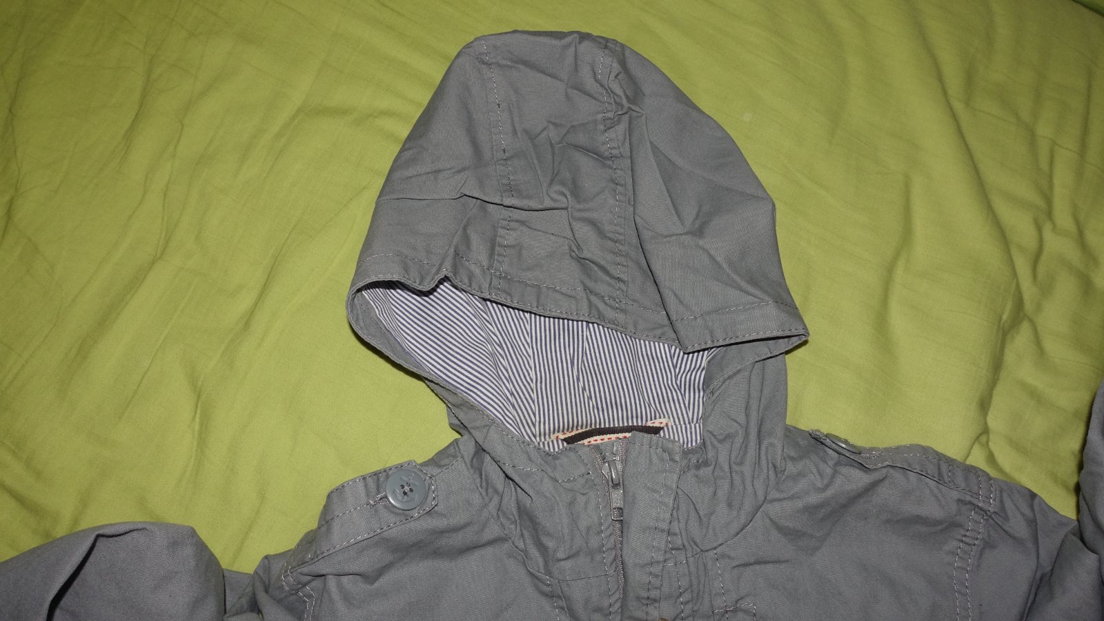 Krasna bundicka vo velmi dobrom nosenom stave. Je tenka- len podsita- tak na jar. Je trosku tmavsia ako na fotke- ta sa vobec nepodarila, bundicka vyzera ovela lepsie v skutocnosti.