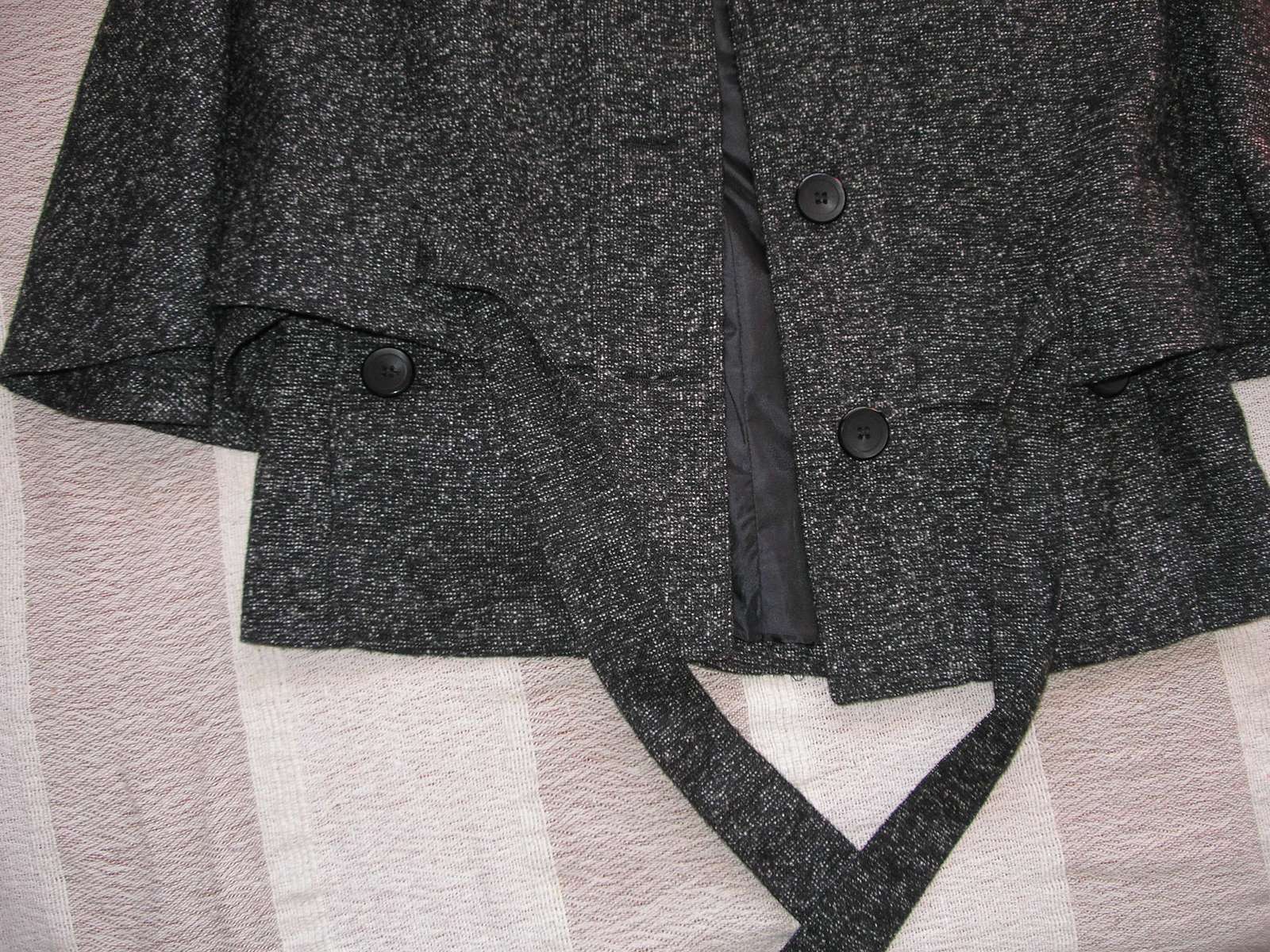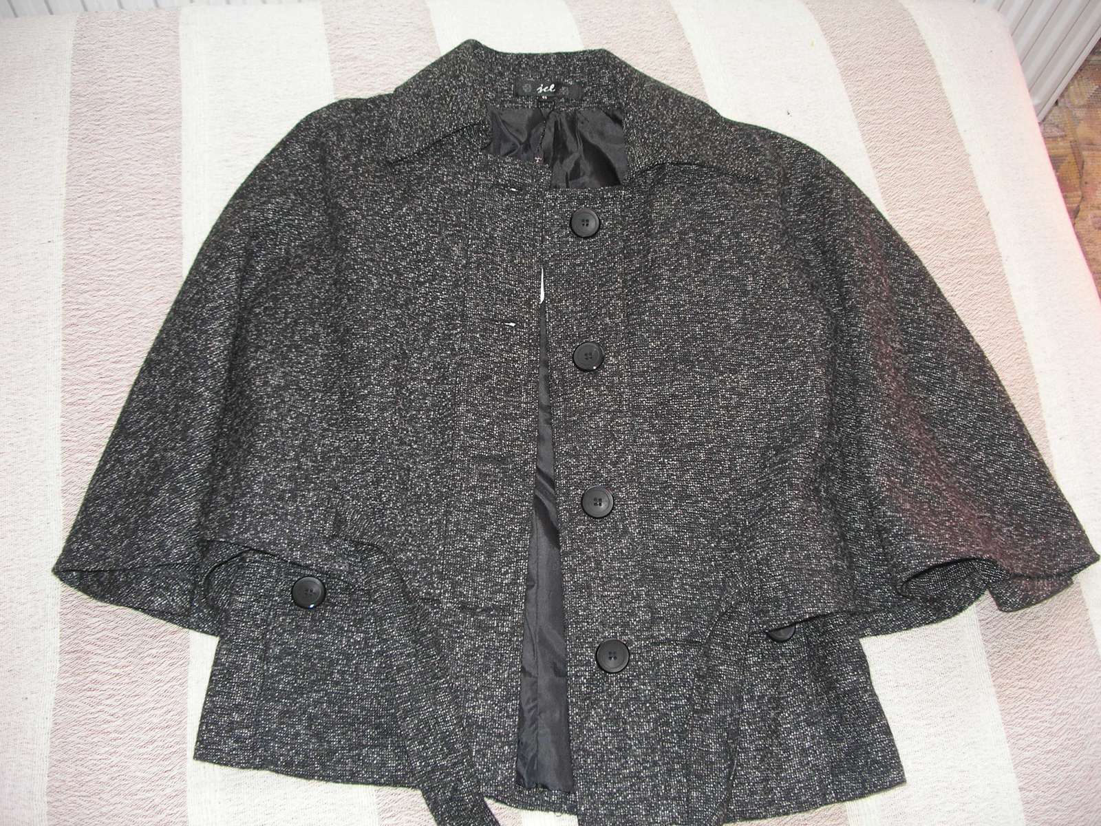 Kupovany tu, na MK, este pocas tehotenstva, ale po porode je mi stale uzky, co mi je velmi luto, lebo je naozaj skvely. Kabátik je nenosený s visačkou, kvalitne šitý- vo vnútri aj podšívka,farba čierna melírovaná, kupovaný v obchode s elegantnou dámskou módou, veľmi pekne ukáže na akýkoľvek roláčik..v páse sa zaväzuje veľkosť typická S-ková.
