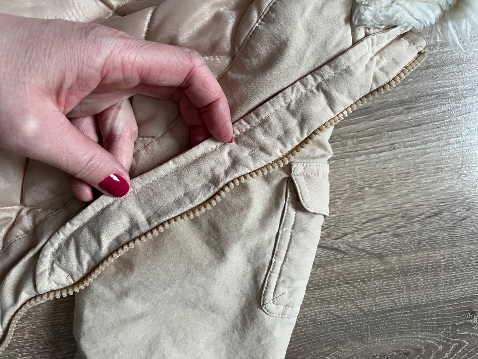 Velmi pekne prepracovana, krasne kozusinky na kapucni, mierne zuzena v pase