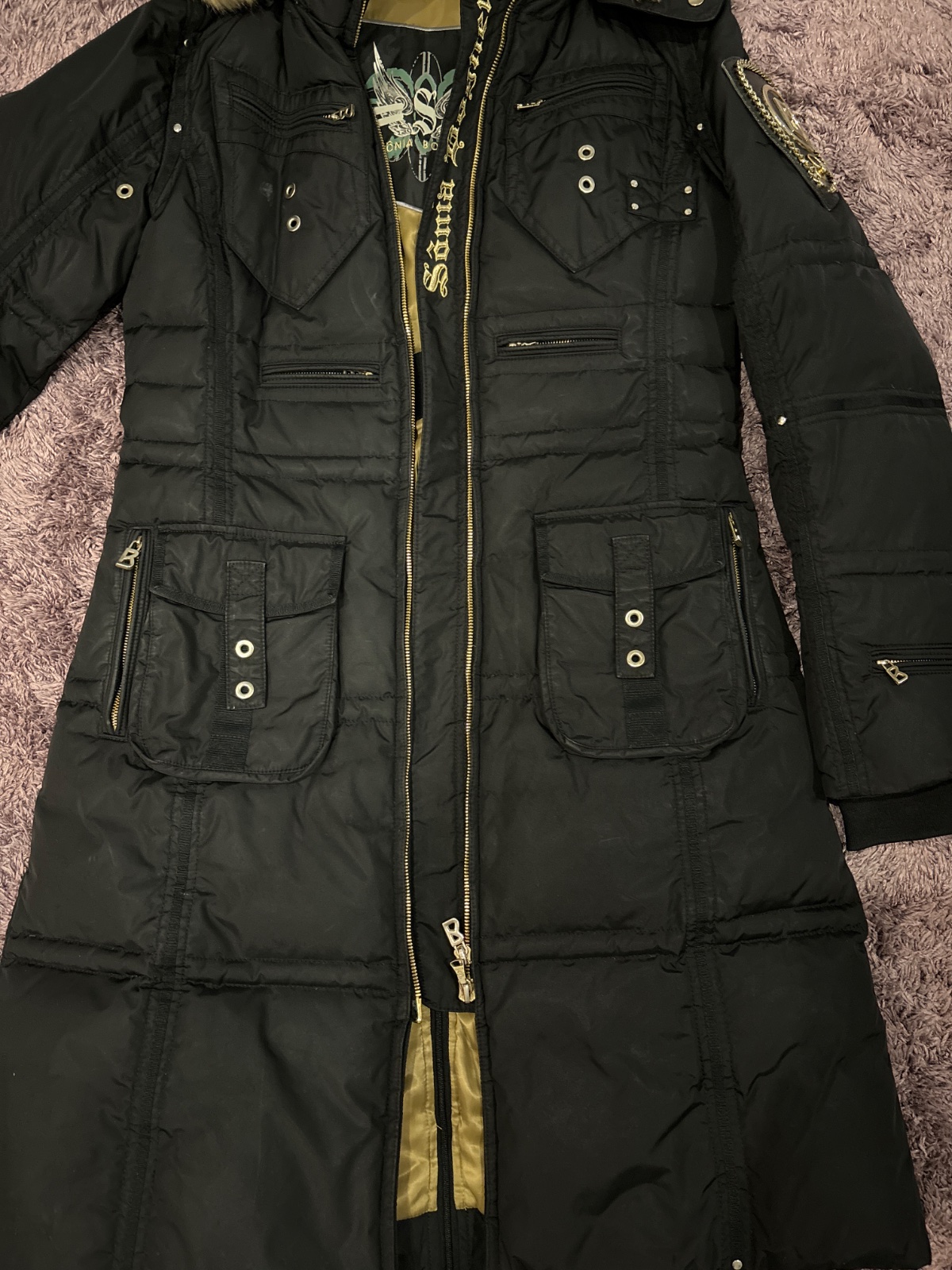 Nádherná bunda bogner 34,pekny stav,nedostatky: treba dať do čistiarne, pokazil sa mi zips na odopinani kapucne,ktorá je momentalne prisita o obe strany zipsov… bunda je originál,kvalita,nádherný strih,práva kozusina,logo bogner na rukáve sa dá odopnut, odporucam,je uzasna