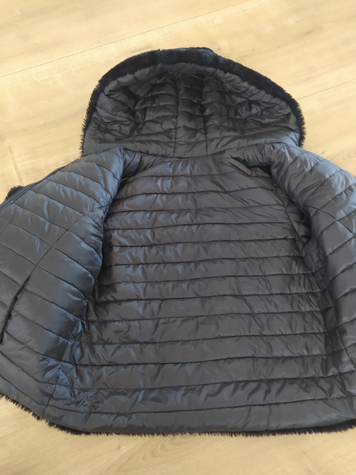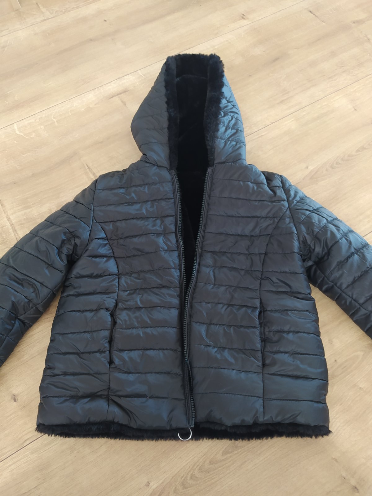 Krásny obojstranný kožuštek, z jednej strany huňaty kožuštek,z druhej prešívaná bundička. Veľmi pekne ukáže na postave, vo výbornom stave,bez akýchkoľvek poškodení. Veľkosť píše 10-11 rokov