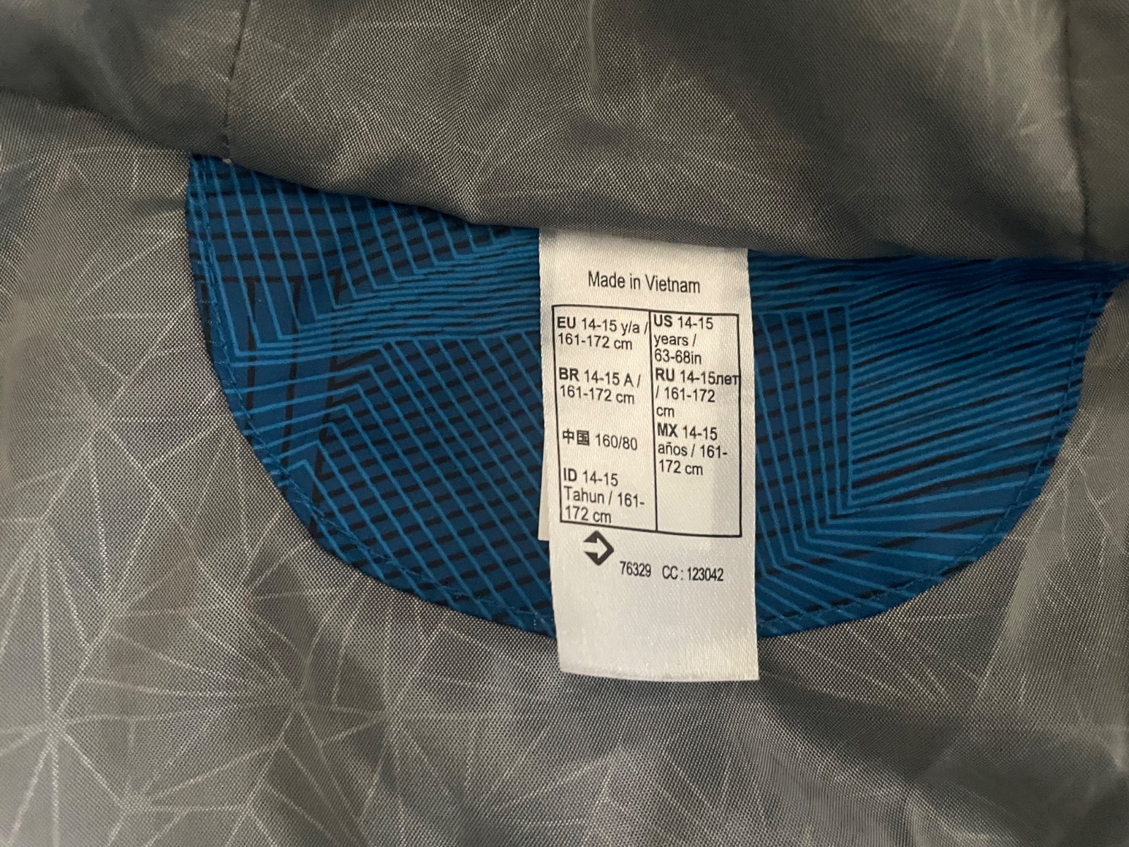 Nosená, v stále veľmi dobrom stave, určite vydrží ešte jednu jar a jeseň. Syn má 15 rokov a 175 cm a je mu už trochu krátka (má okolo 175-6 cm). Nosil ju asi 2 roky. Cena nezahŕňa poštovné.