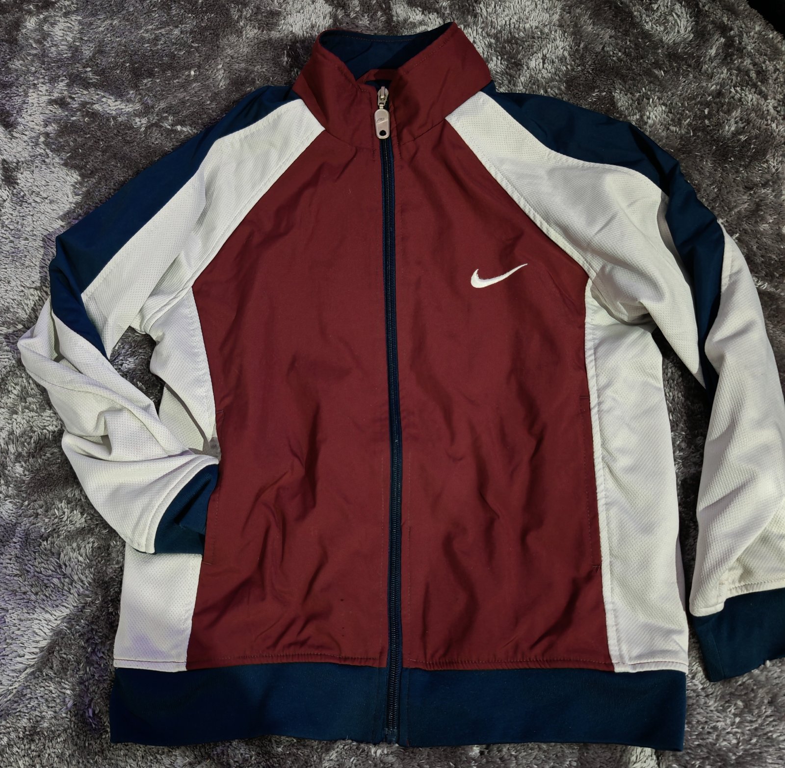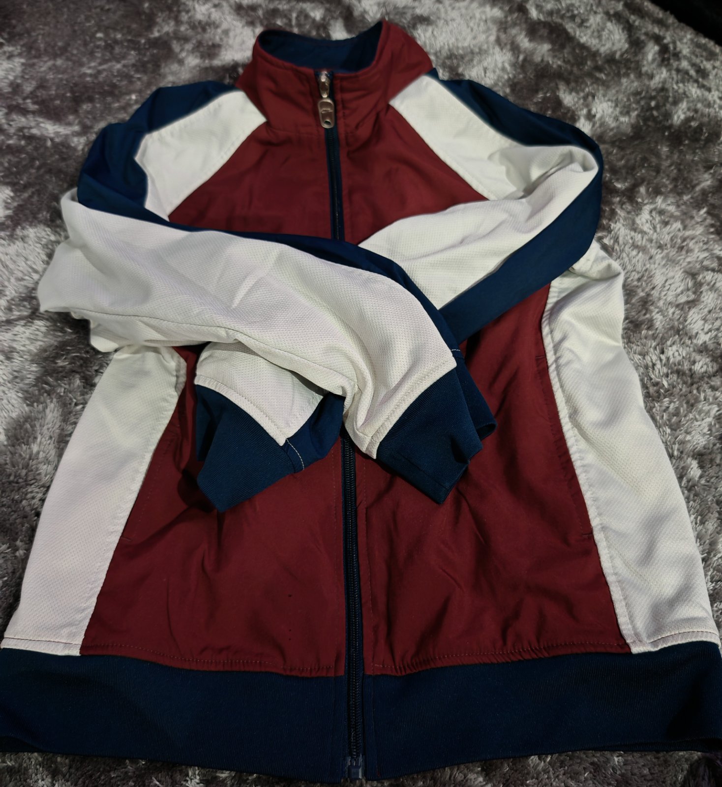 Prechodná bunda na zips, po bokoch vrecka, nosena, veľkosť tipujem, chlapčenská, ale nosila ju dcéra, podľa mňa je taka univerzal,ma len jednu chybu zips sa niekedy dole roztvori,neviem preco,zips je v poriadku-vid foto,nespravi to vzdy a neotvara sa to az hore,inak je v super stave,cena chybe prisposobena