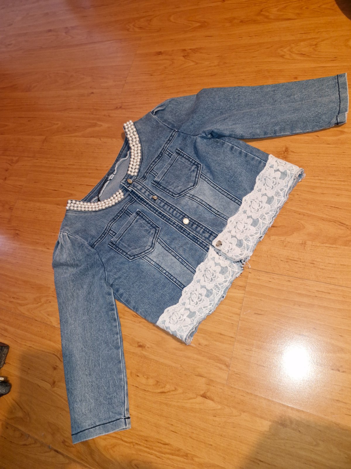 Ponúkam na predaj bledomodrú bundu s tenšej rifľoviny vo veľkosti M. Bundička bola oblečená párkrát je v perfektnom stave bez akéhokoľvek poškodenia. Dĺžka bundy (56 cm), dĺžka rukáva (59 cm), šírk...