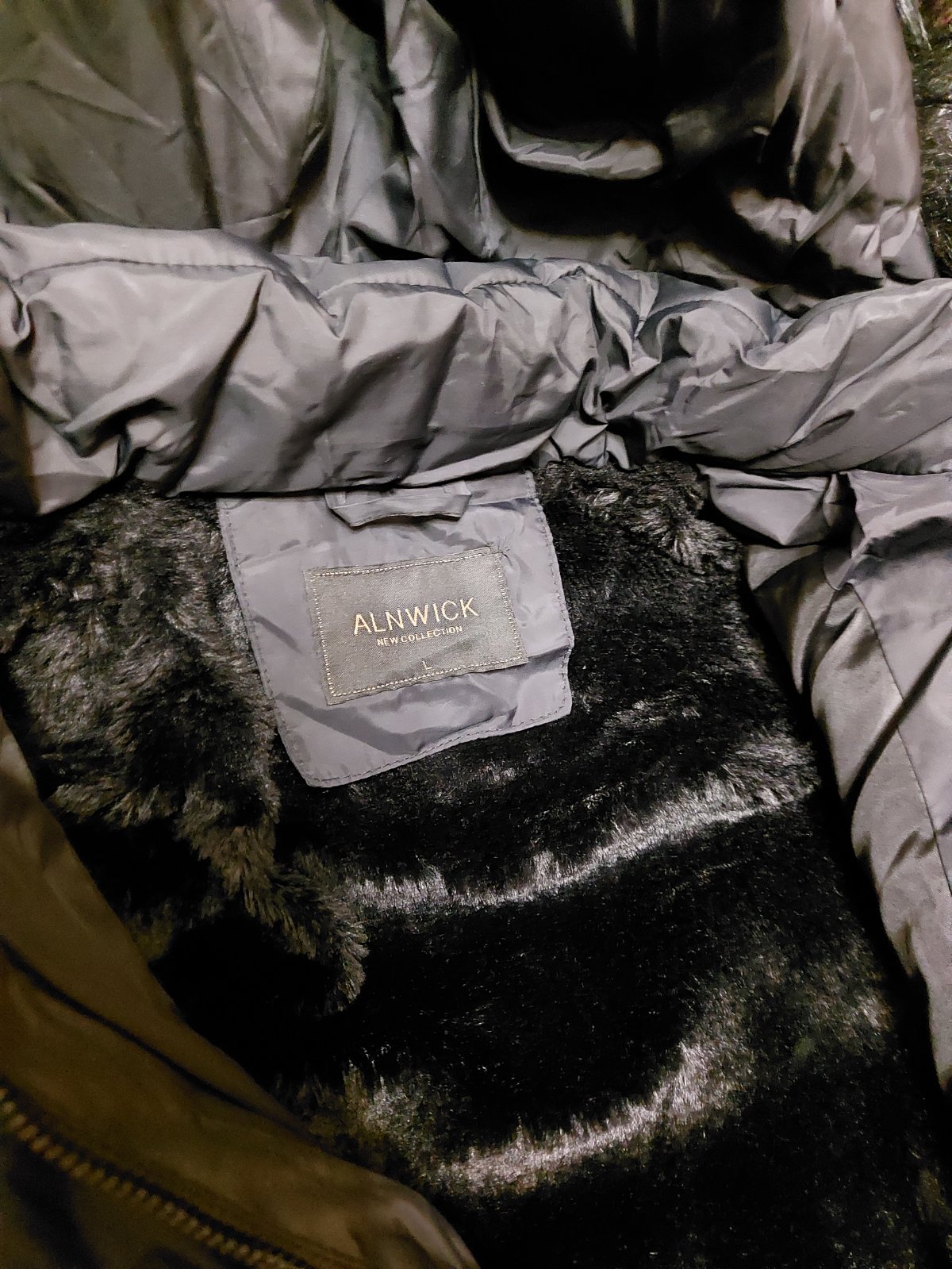 Tepla vetrovka zn ALNWICK,. Výborný stav, s kapucňou,.. ..vnútri kožušina...hrudník 55 cm x2, dĺžka 68 cm, rukáv plus plece 79 cm..