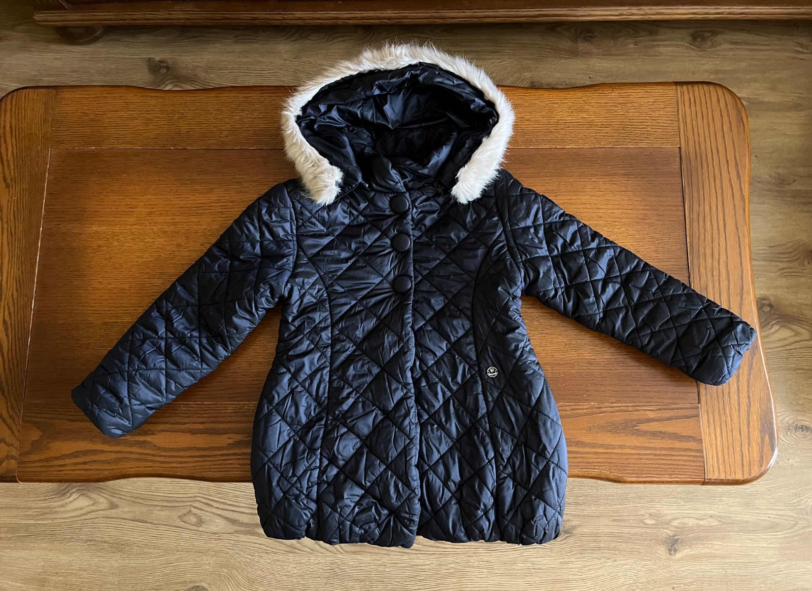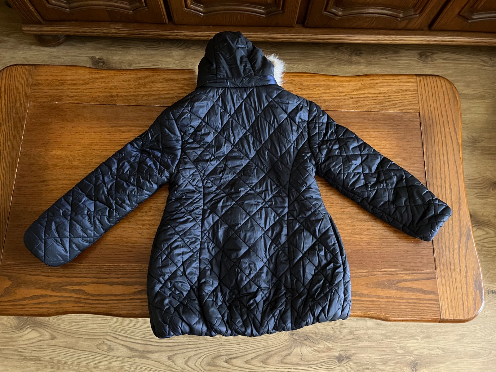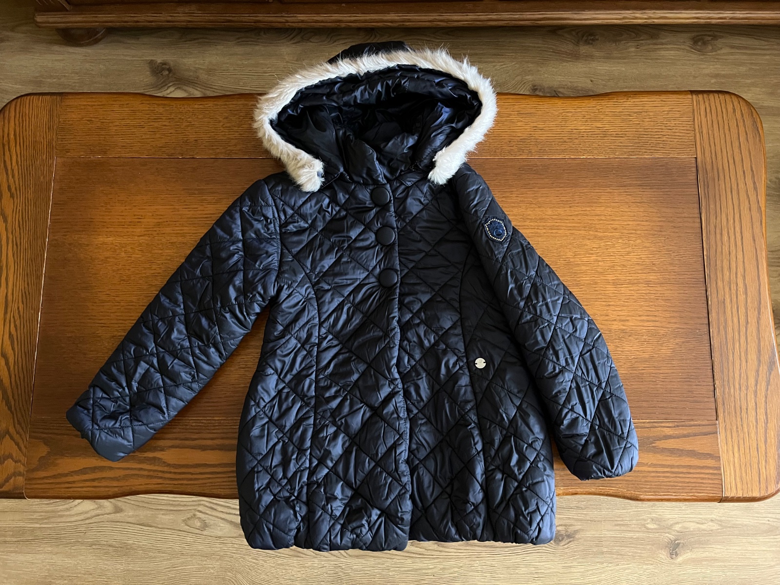 Prekrásny dievčenský strih, mierne predĺžený, množstvo krásnych a prepracovaných detailov. Celoplošne ozdobné prešívaná. Kapucňa sa dá odpojiť, rovnako ako aj krásna kožušinka hebučká ako zajačik.