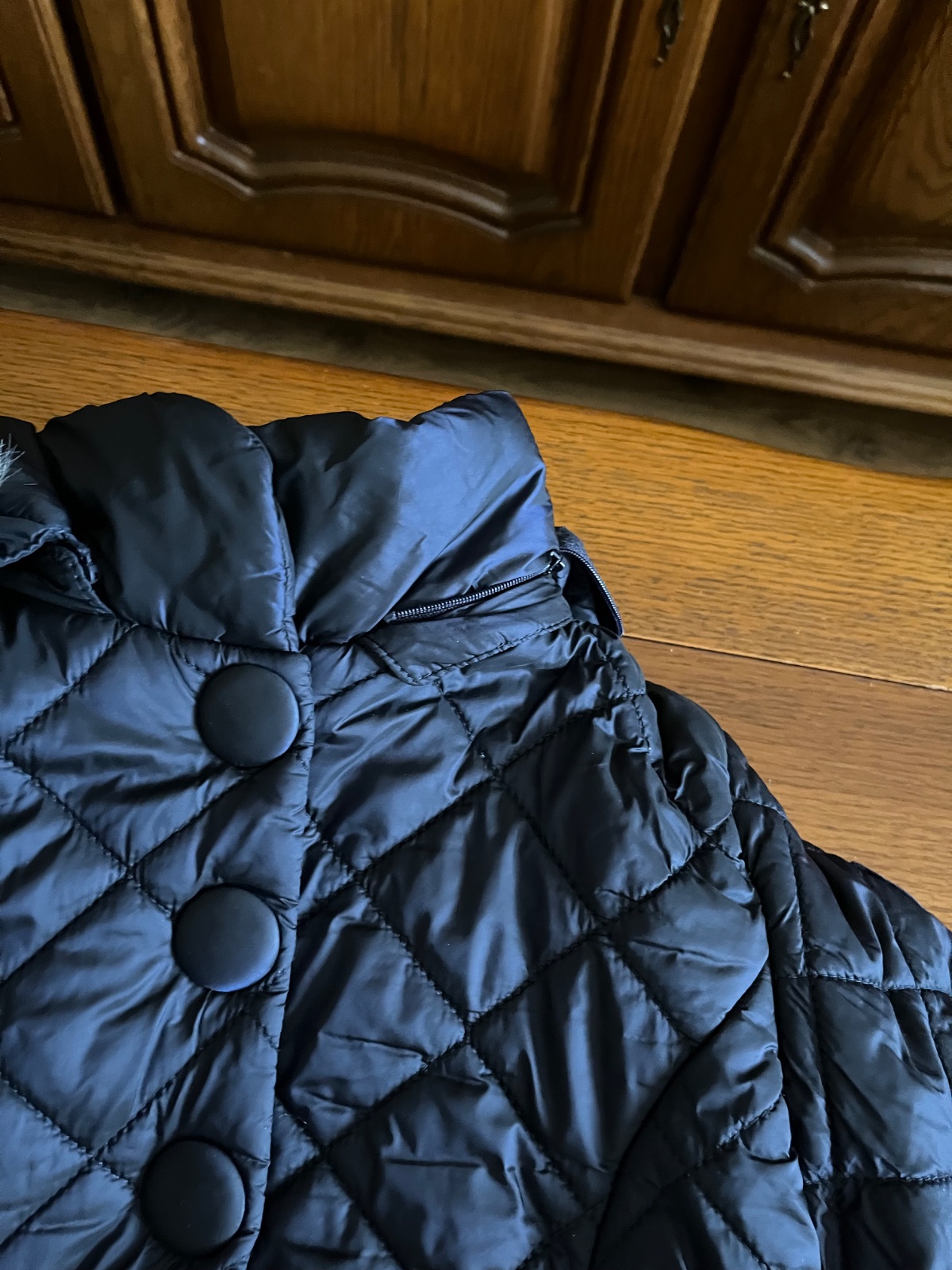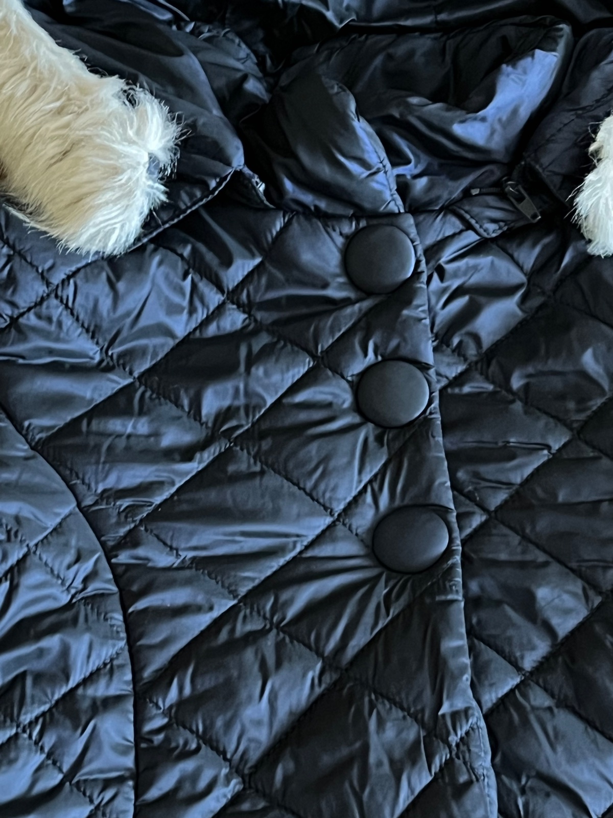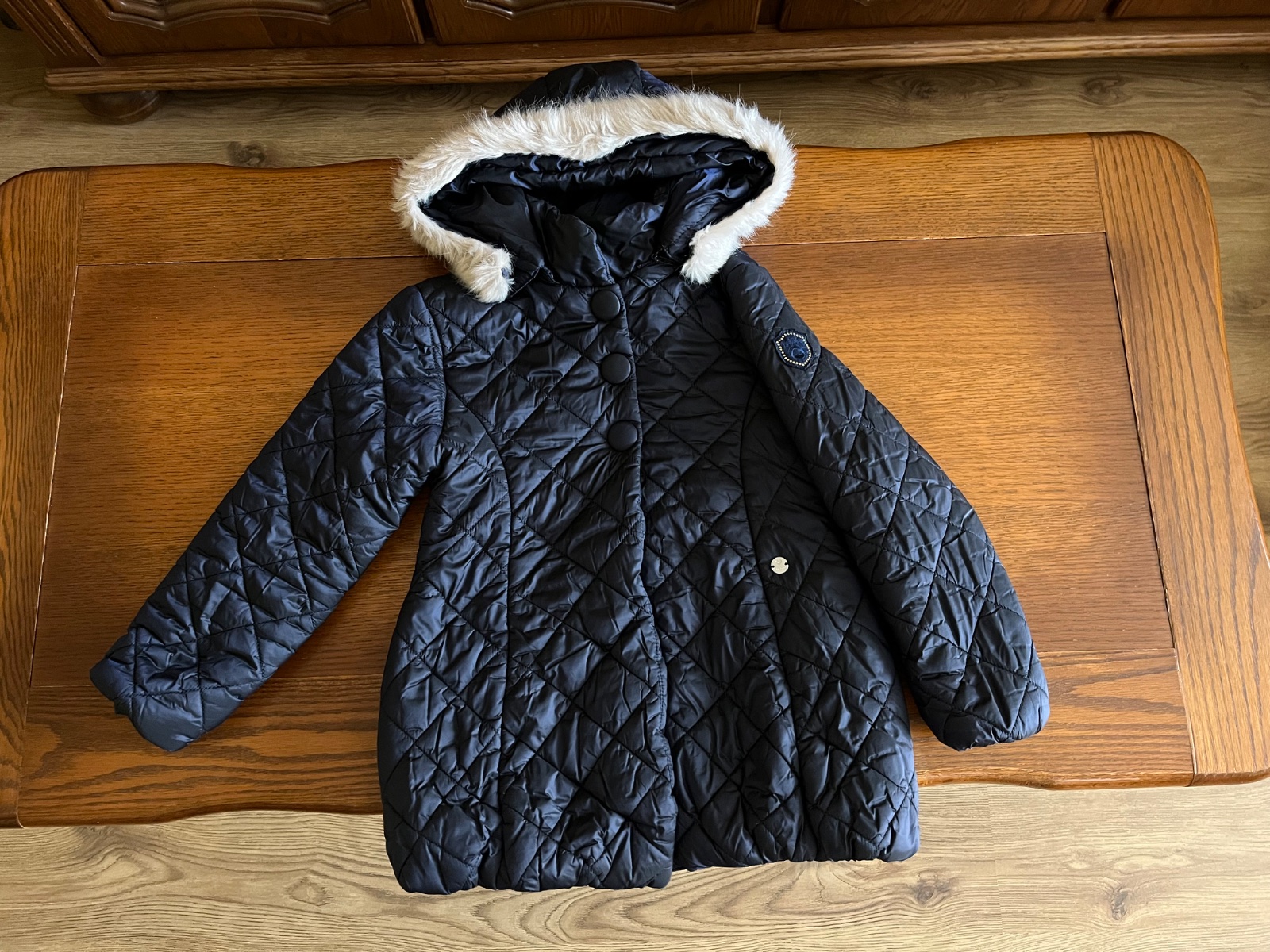 Prekrásny dievčenský strih, mierne predĺžený, množstvo krásnych a prepracovaných detailov. Celoplošne ozdobné prešívaná. Kapucňa sa dá odpojiť, rovnako ako aj krásna kožušinka hebučká ako zajačik.