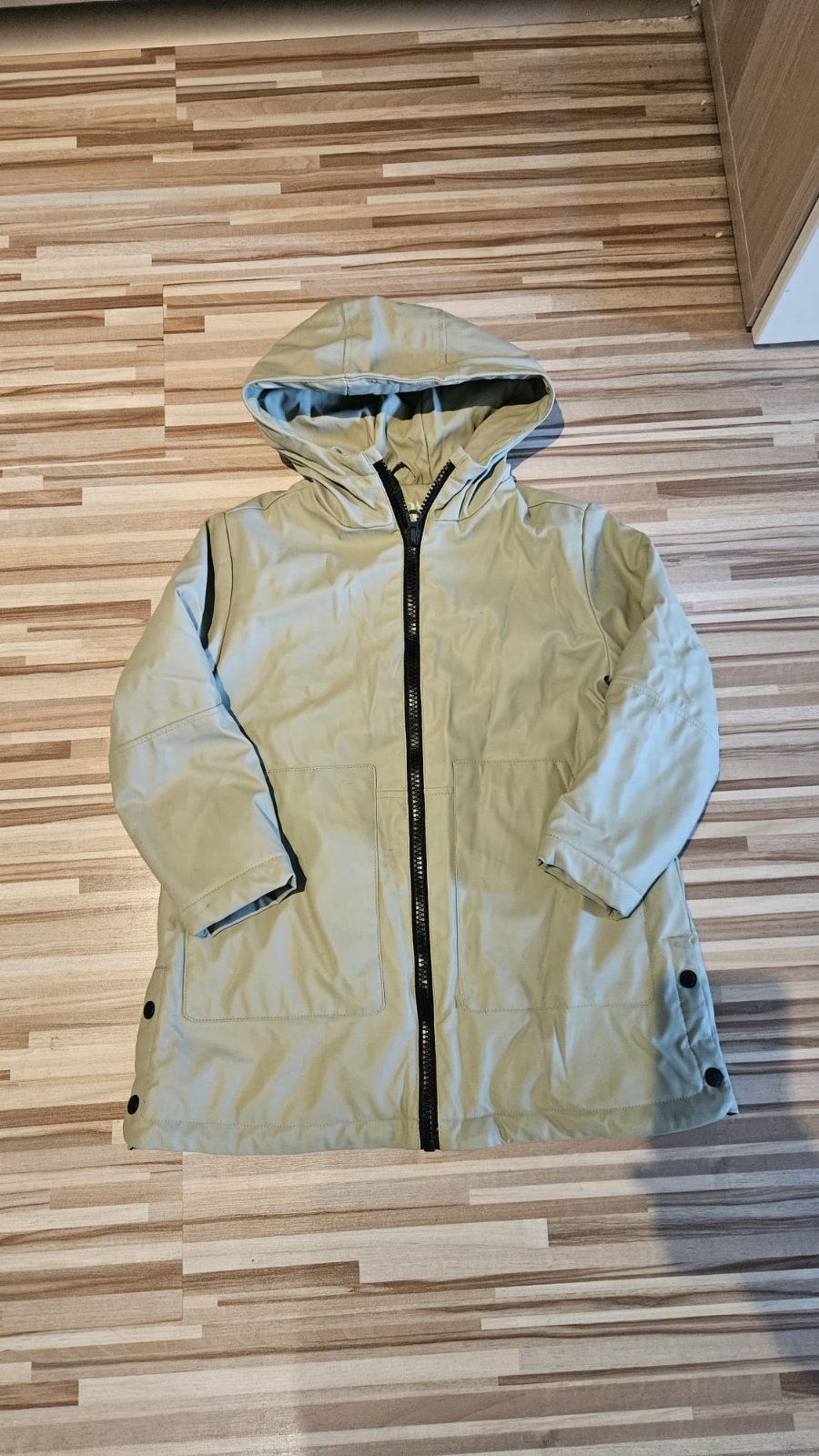 Zara bunda nepremokava 128 - vrch pogumovany , je to akoby prsiplast do dazda, ale hrubsi, futrovany. Cena je 18 EUR plus posta.