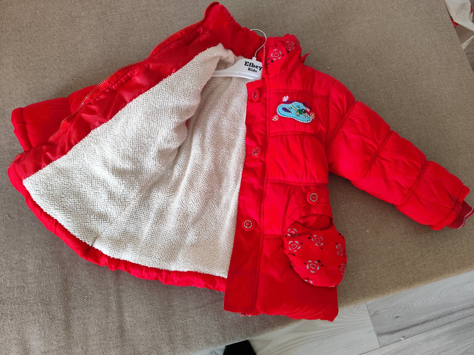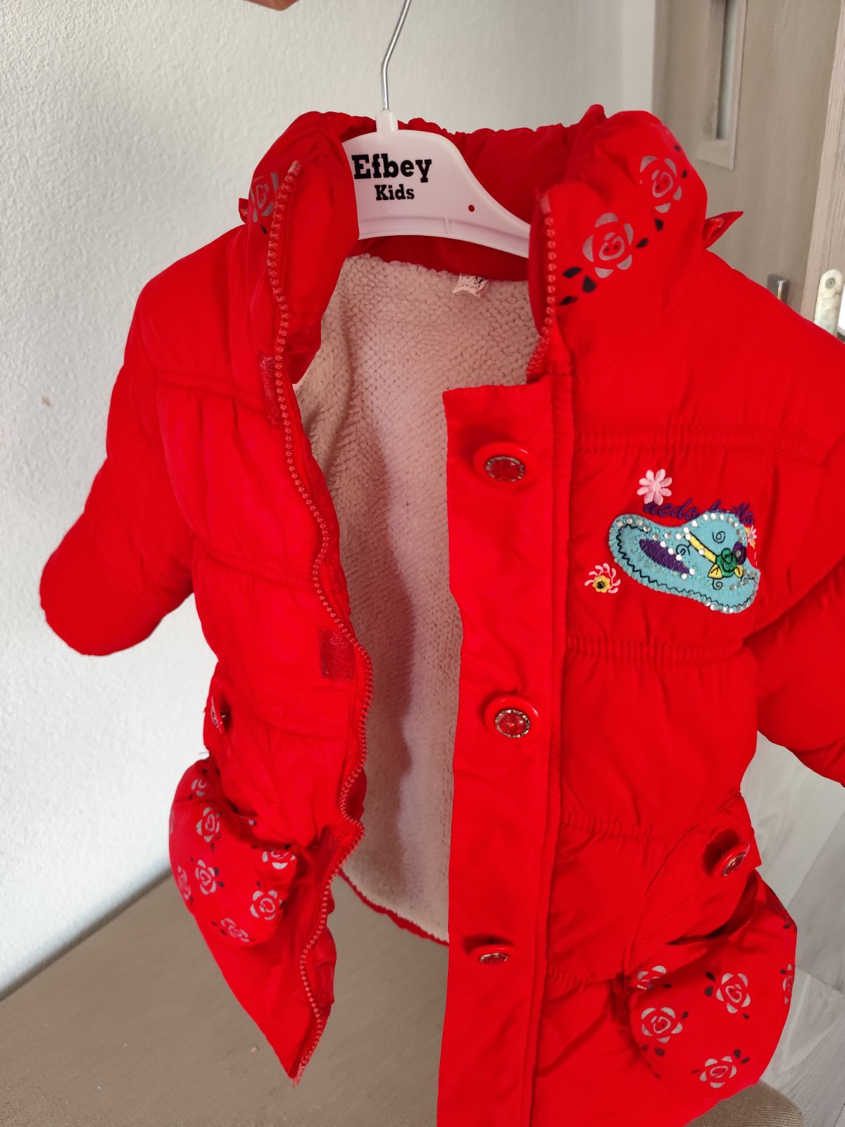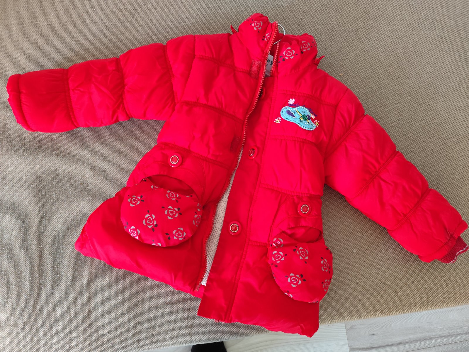 Predám túto teplú dievčenskú bundu. Je v dobrom stave, používaná. Veľkosť je na fotke zobrazená. V prípade záujmu pomeriam presne rozmery. Cena je 3€ plus poštovné.