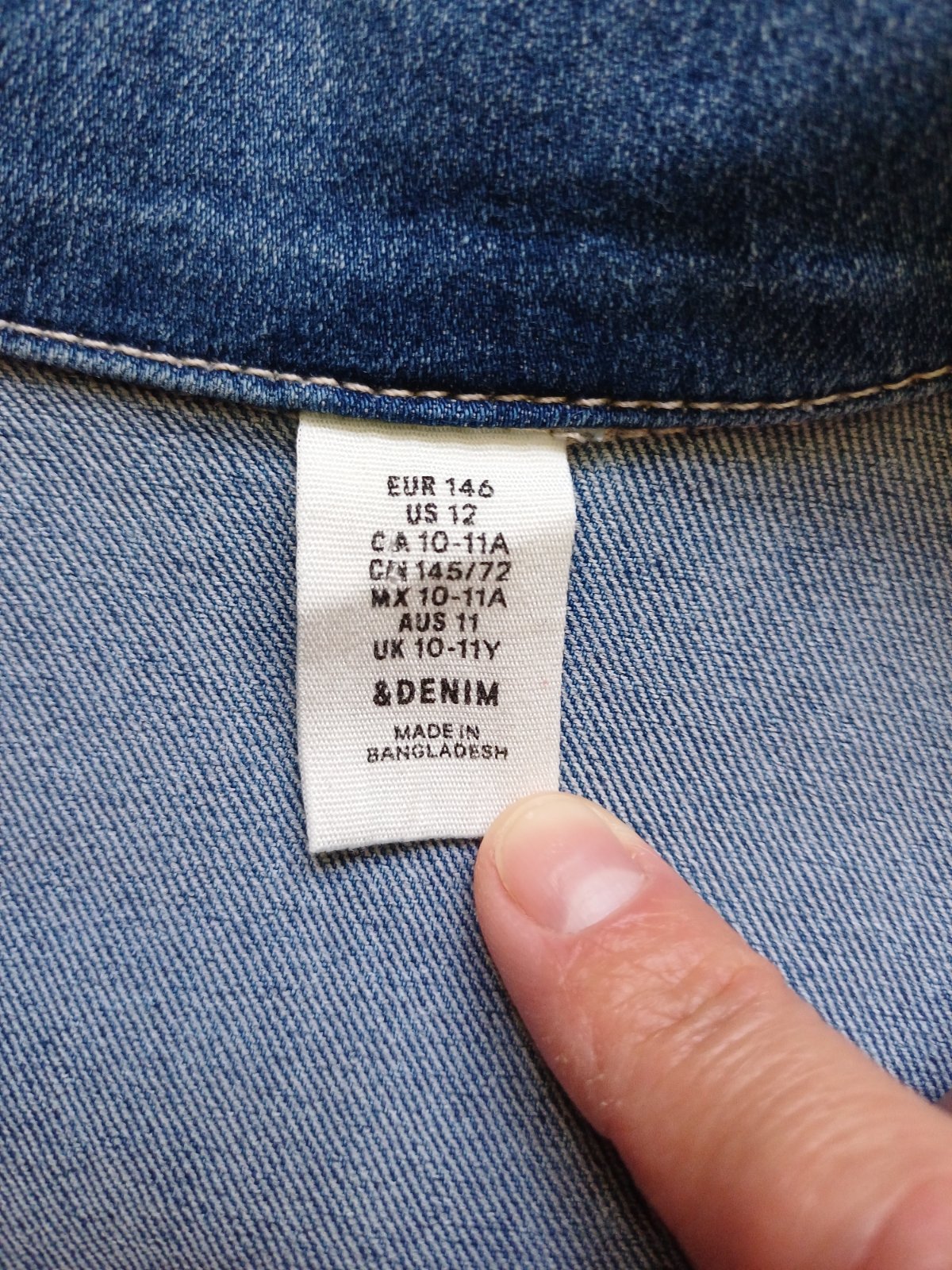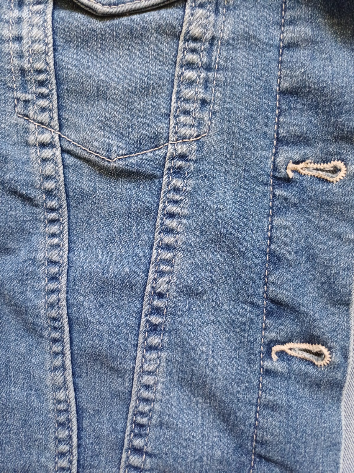 Kvalitná rifľová bunda, veľmi dobrý stav, nepoškodená, zapínanie na gombíky, 4 x vrecko, celková dĺžka 46 cm, šírka pod pazuchami 2 x 39 cm, rukáv od pleca 53 cm.