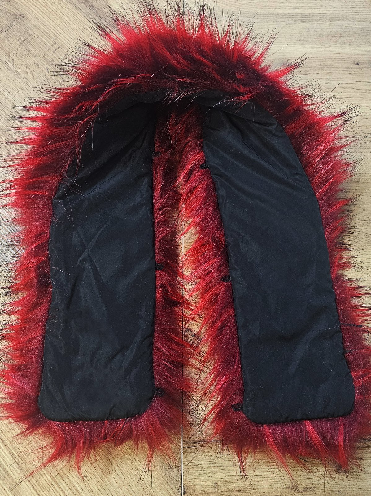 Červený - cca dĺžka 80 cm, šírka cca 15 cm (zapínanie na putká) 9€