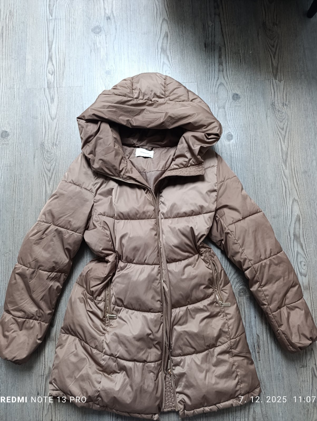 Zimná bunda reserved, veľmi teplá, dobre vatovaná, 36 veľkosť- ale kvôli strihu S-M, taká oversize. Nosená počas tehotenstva, zapínanie na patenty, nie zips, veľká kapucňa. Krásna, ešte veľmi dlho ...