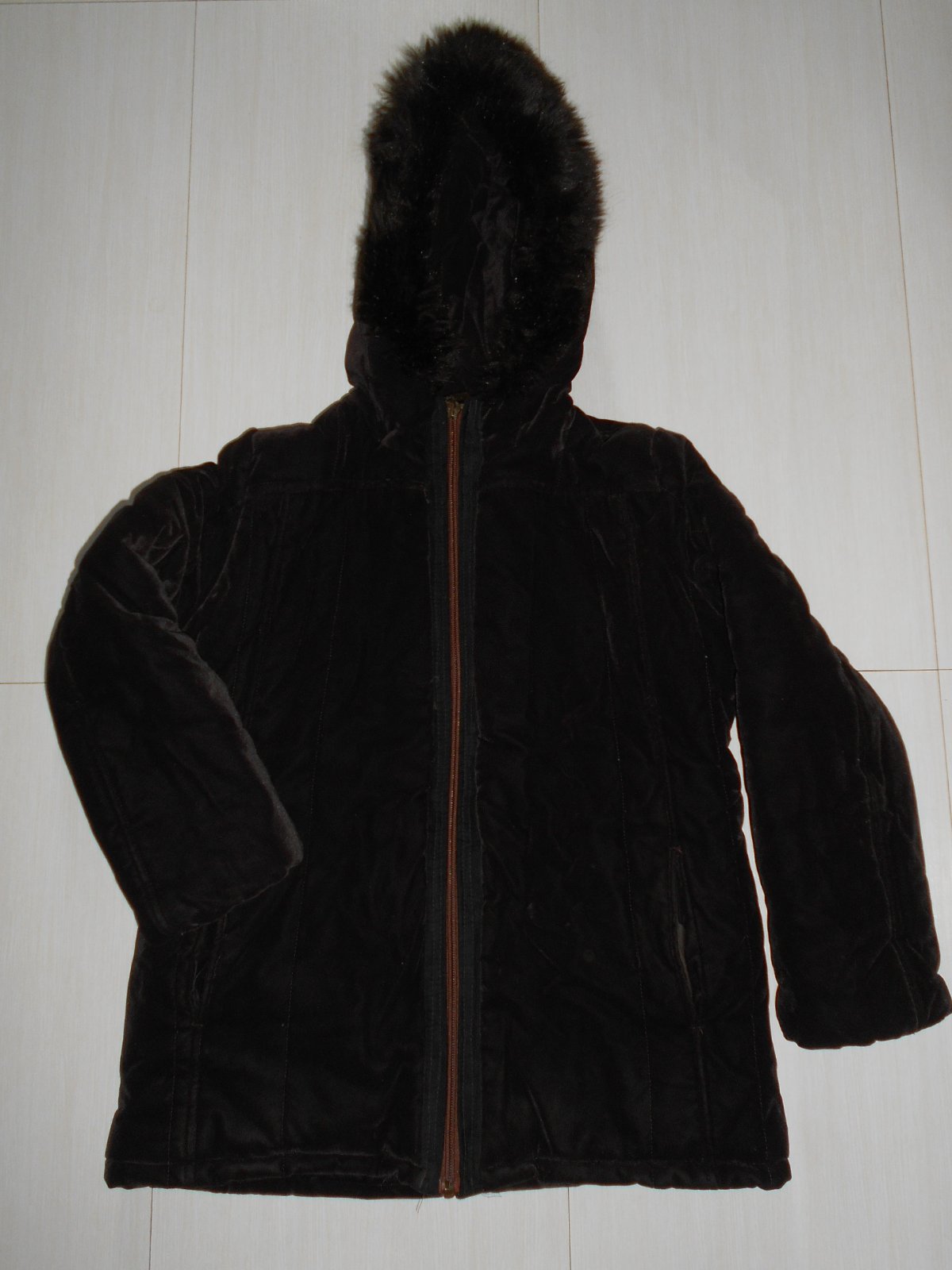Predám nosenú hrubšiu zimnú bundu. Kapucňa je napevno, zapínanie bundy na zips. Veľkosť som len odhadla, nakoľko na bunde už nie je štítok. Materiál je niečo ako semiš.