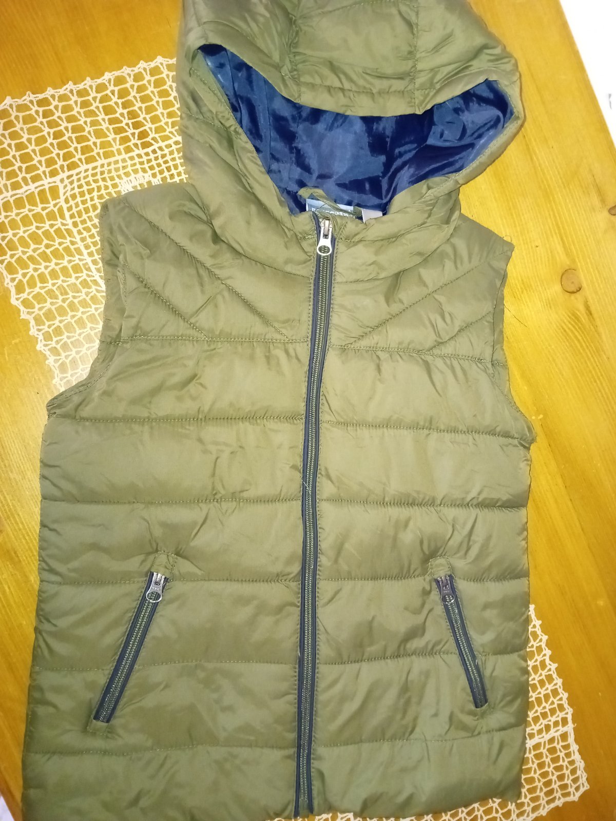 Nepremokava vesta Reserved Látková vesta jednoduchého strihu. Nízky stojačik Zapínanie na zips Dve vrecká na prednom diele Nepremokavá látka Hladká podšívka Veľkosť 134/140, 146/152, 158/164 zelen...