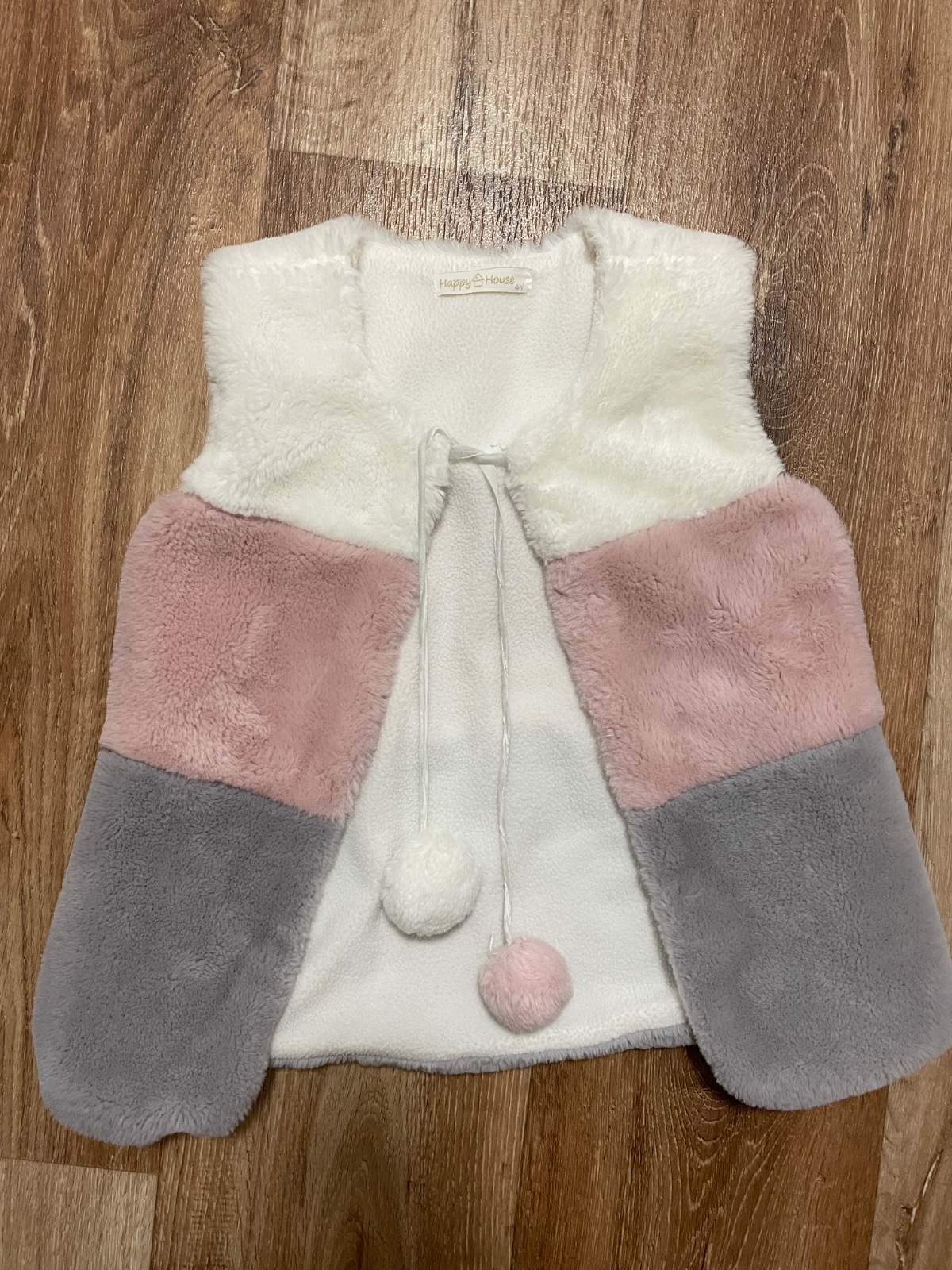 Dievčenská vestička, kupovaná v obchode Popcorn, veľkost na 4 roky, využiteľná dlhšie.