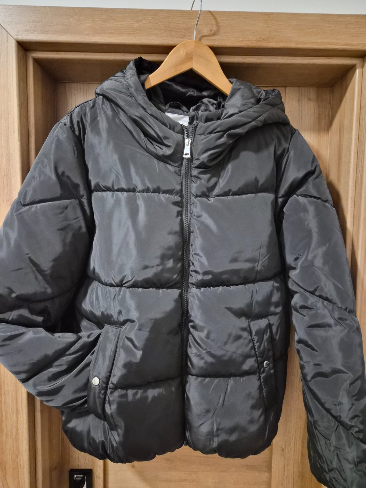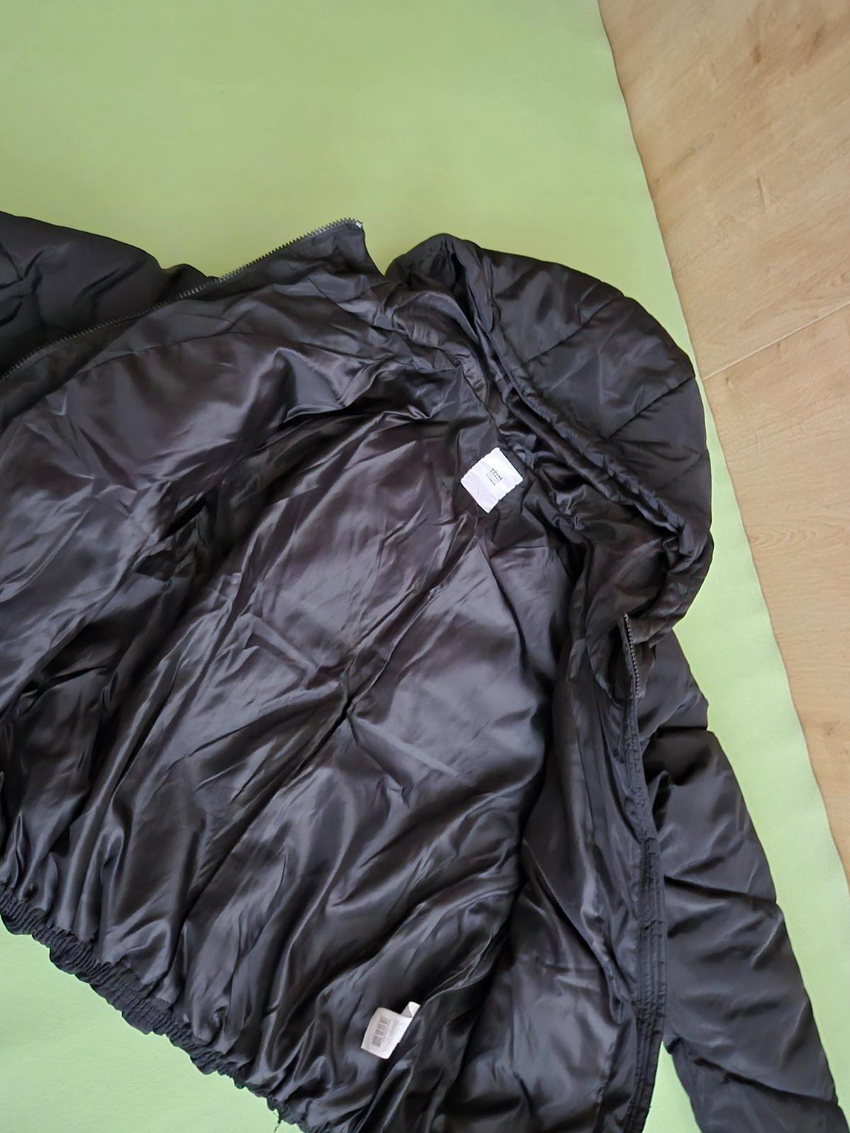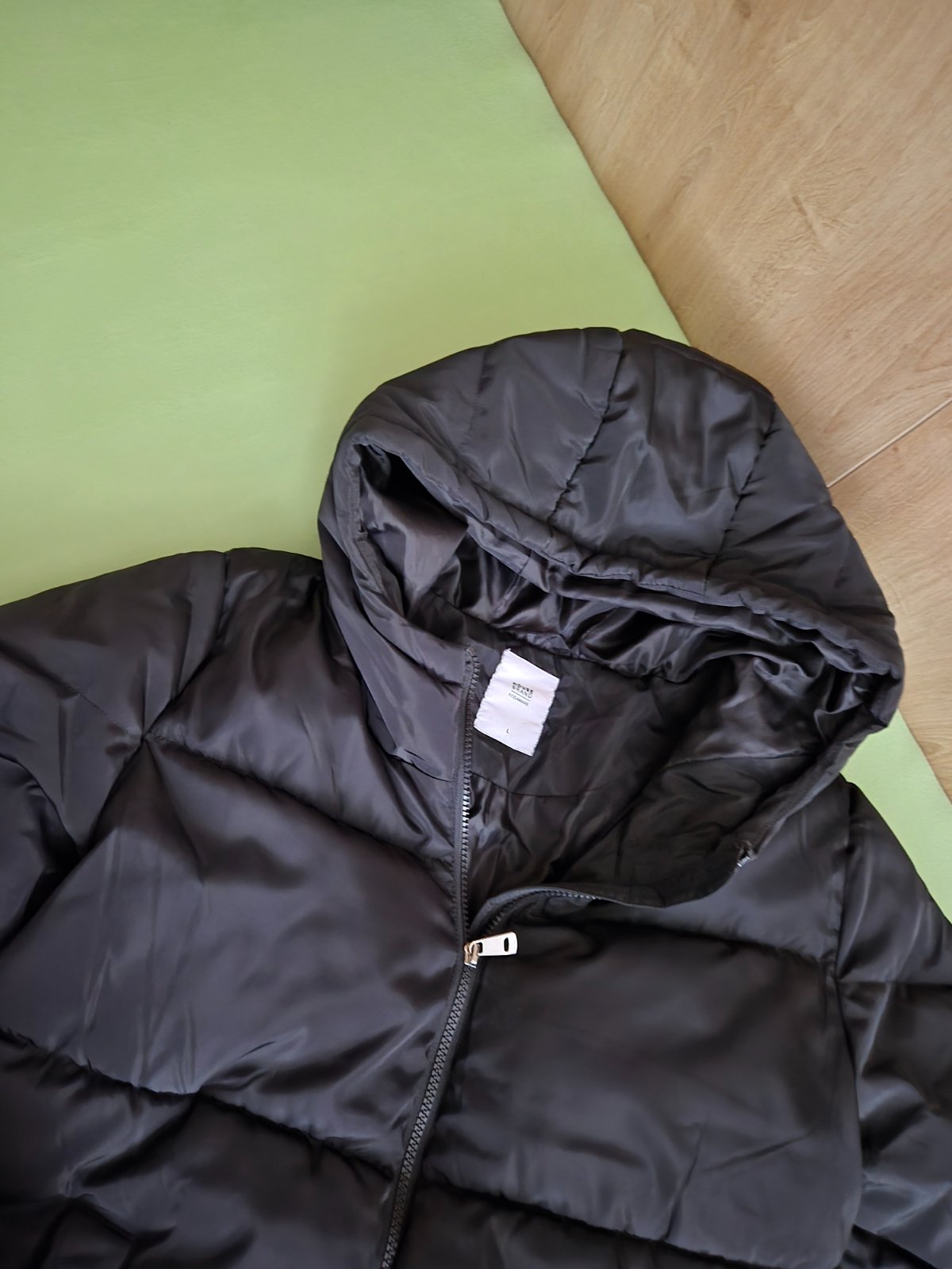 Čierna zimná bunda s kapucňou Bočné vrecká je na zips