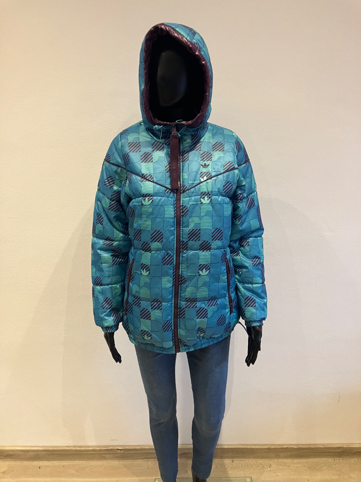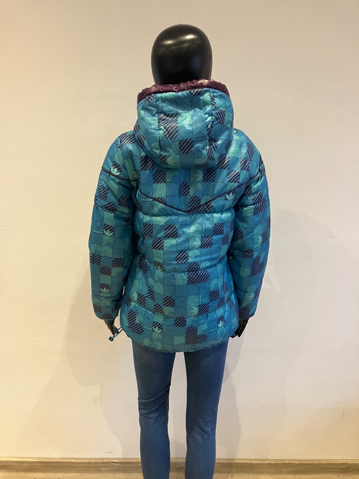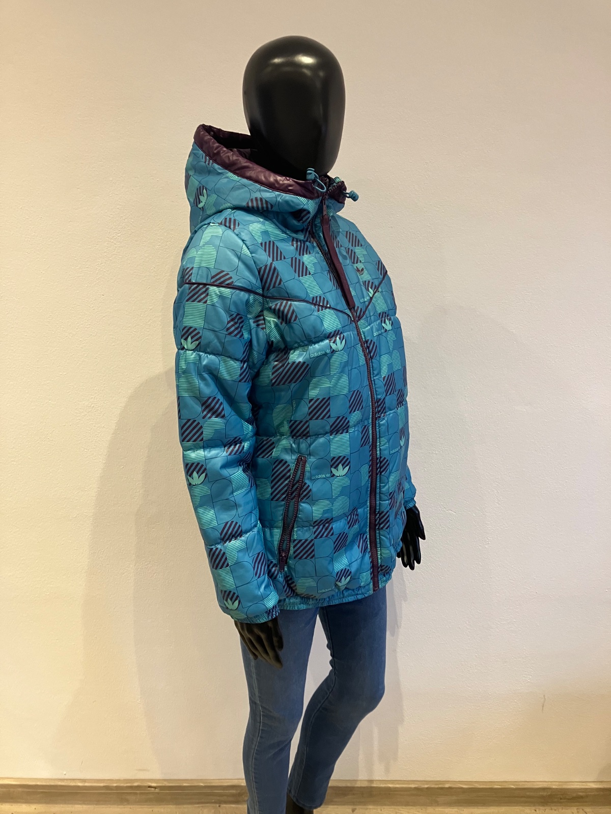 Dámska šušťáková tenšia zimná bunda s kapucňou, kapucňa nie je odnímateľná, zapínanie na zips, dve bočné vrecká na zips, materiál 100%polyester, veľkosť 36.