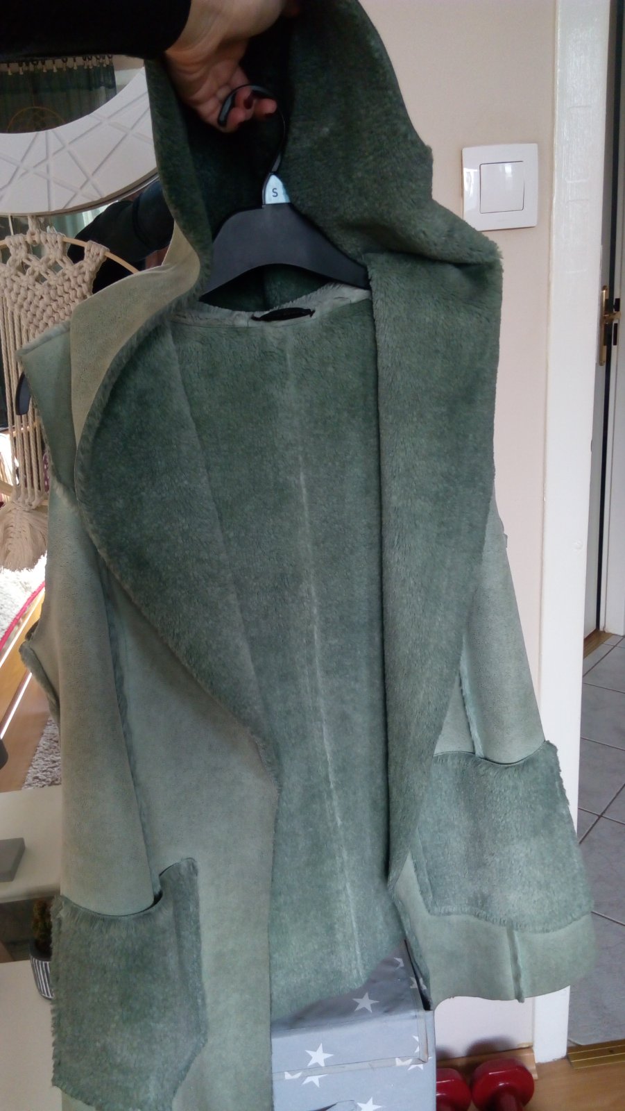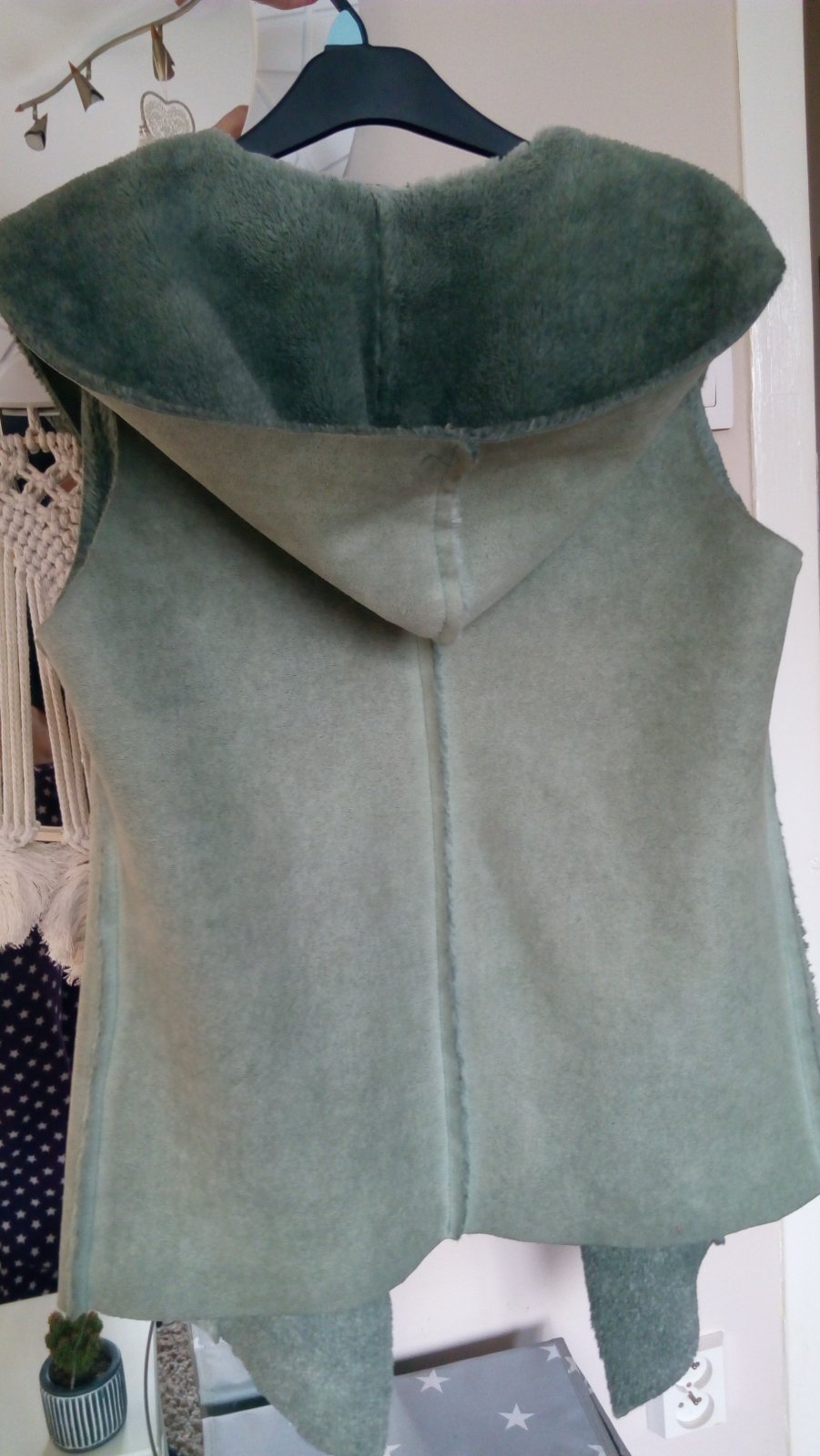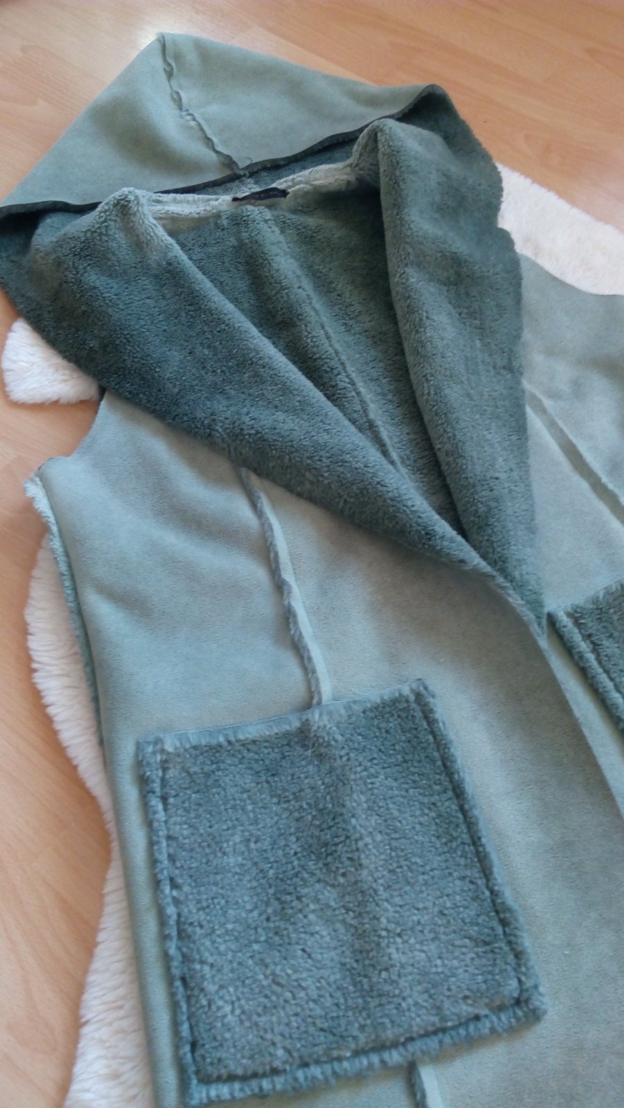 Hrubá teplá vesta, veľkosť písaná M ale sedí skôr na S, rozmery na foto prosím radšej premerať, výborný stav, odopínateľná kapucňa, vrecká na zips