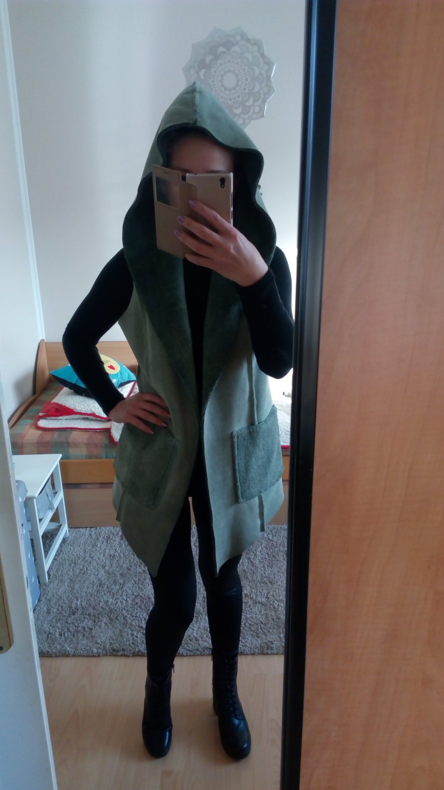 Teplá dámska vesta s kapucnou