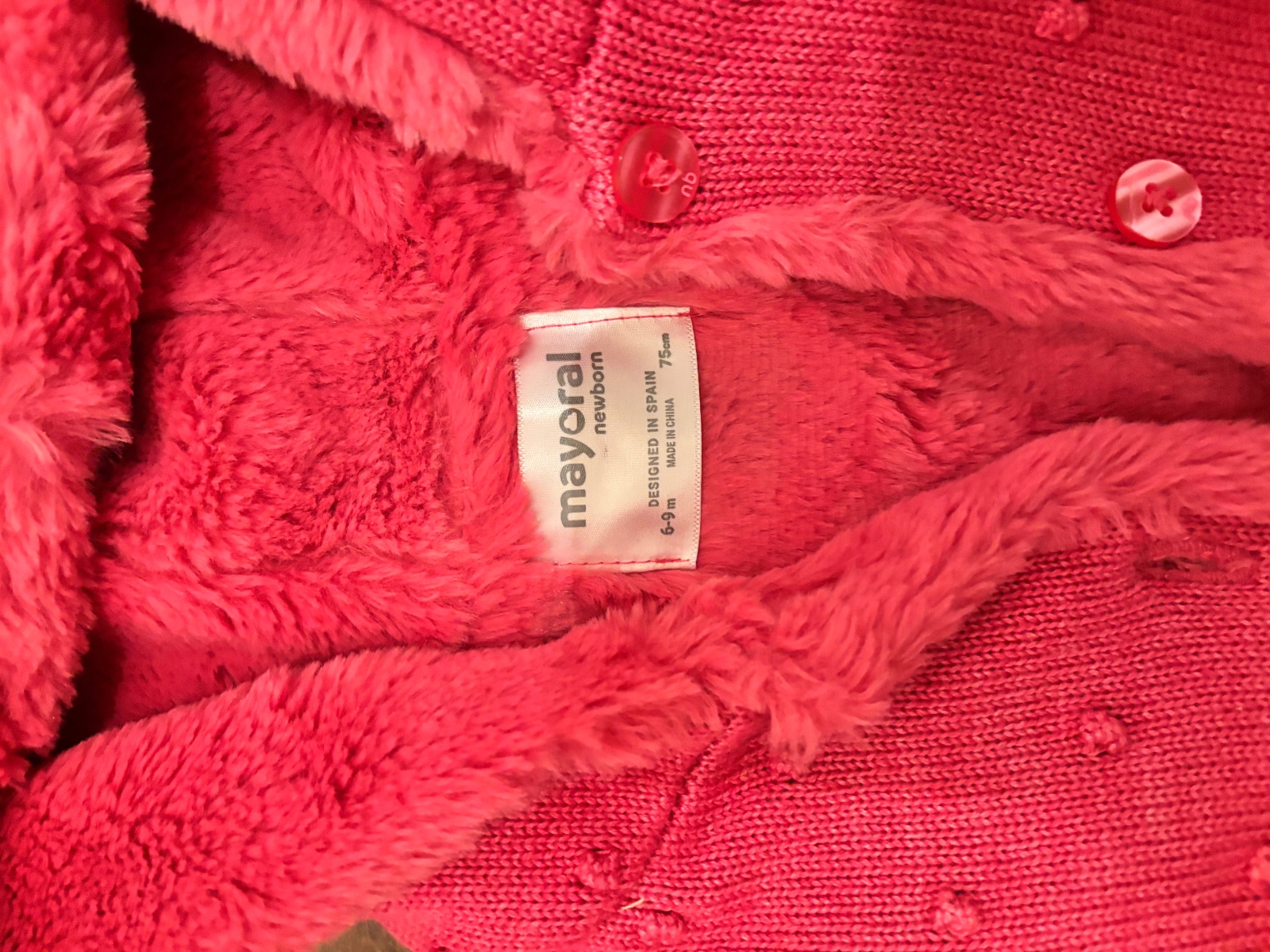 Predam hunaty teddy kabatik/bundicku s kapucnou zn. Next, krasnej ruzovej farby, prijemny makkucky material, velkost 6-9 mesiacov (zodpoveda c. 74). Rozmery: sirka pod pazuchami: 32cm, dlzka rukava...