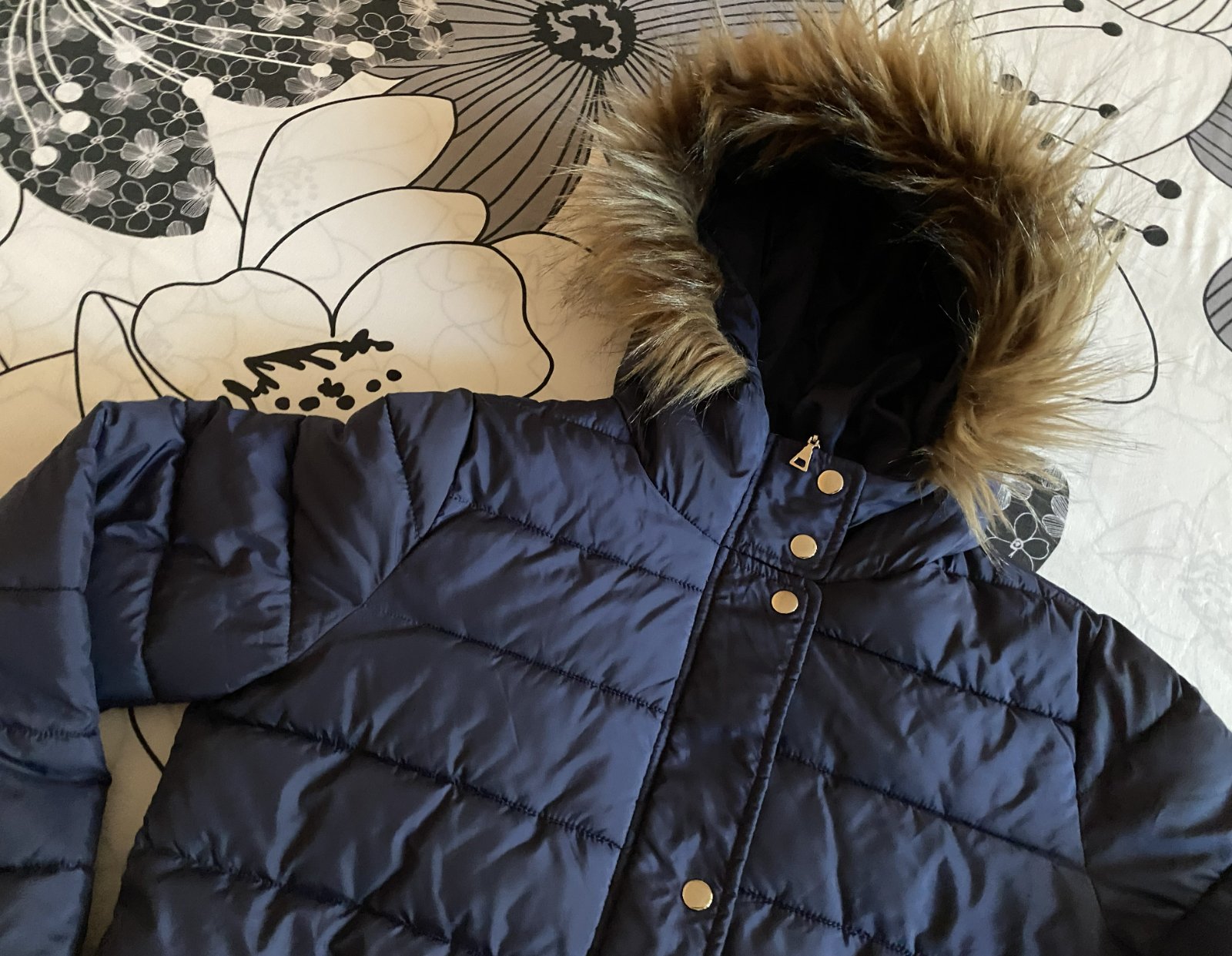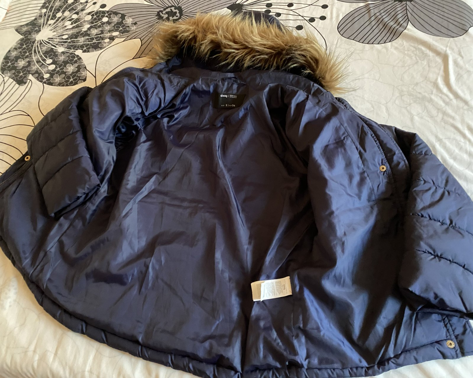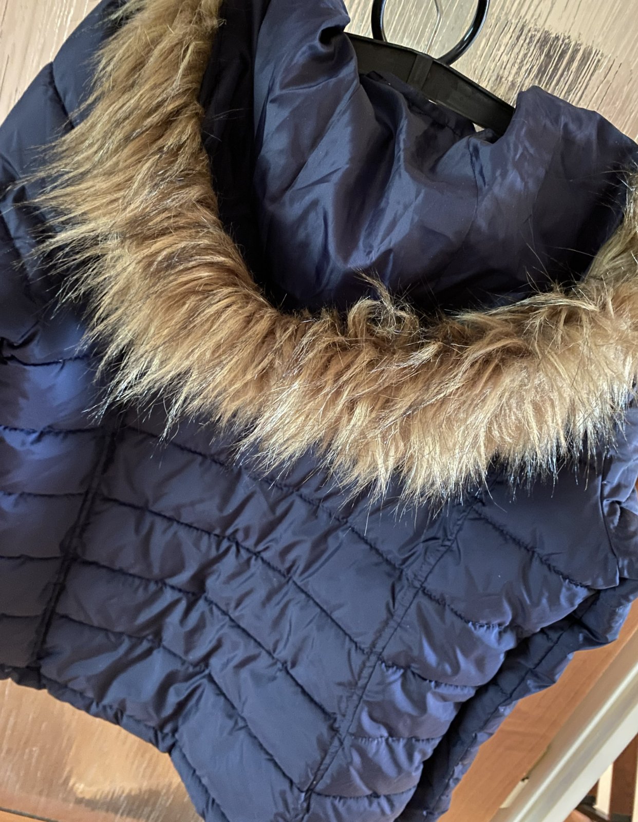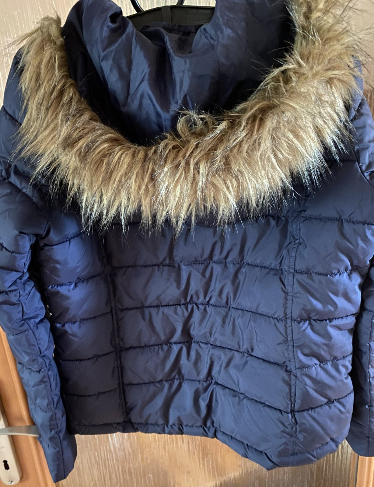 Prešívaná bunda s kapuckou Sinsey v. S - 36, na kapucke umelá kožušinka, pekne prepracovaná, kopa pekných funkčných detailov ( prešívanie, zipsy, cvoky) - nafotené - 3 vrstvy (vonkajšia, vnútorné zateplenie, vnútorná), pekná tmavomodrá farba - niektoré foto osvietené, raz oblečená, v top stave. Miery: dĺžka od krku dolu vpredu: 57cm - vzadu cez stred + 6cm, šírka: 50cmxx2, rukáv od ramena: 59cm + 10cm plece ku kapucke.