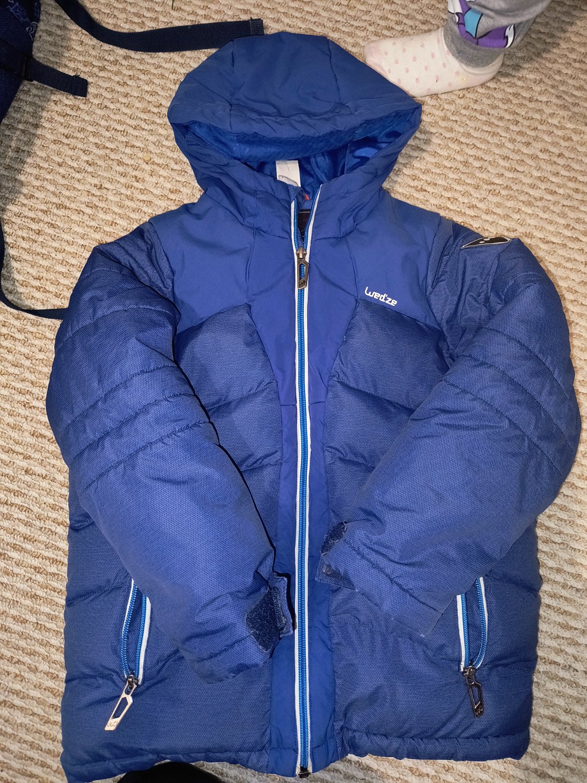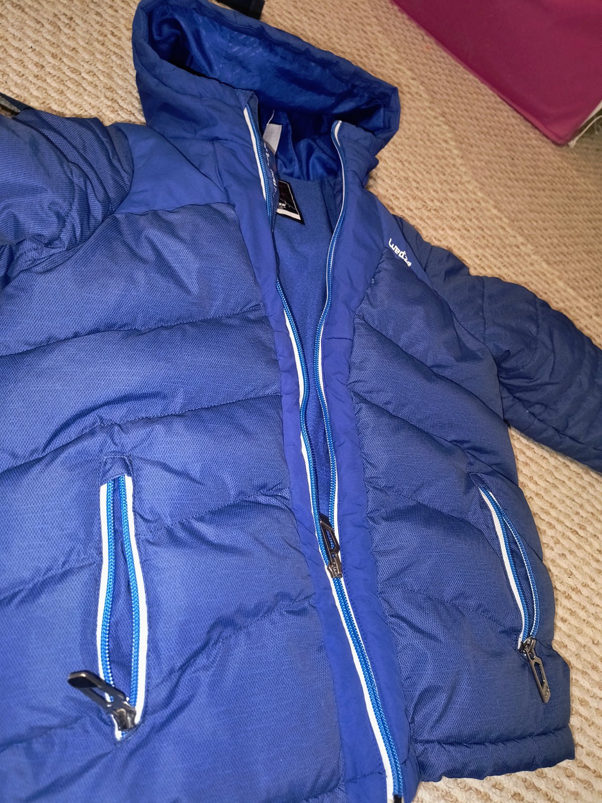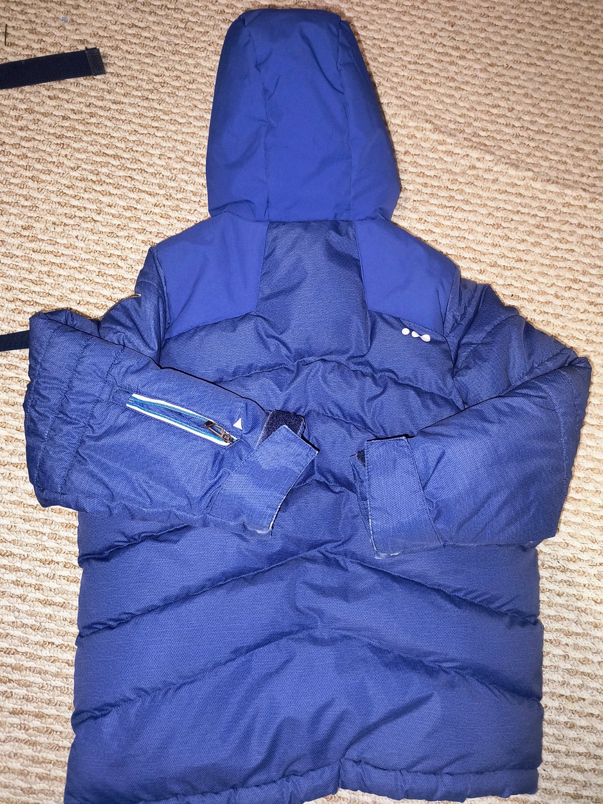 Posúvame bundu vo veľkosti cca 116-122 noseny stav čo je vidieť hlavne na konci rukávov (nafotené) inak bez vážnych poškodení zipsy funkčné v prípade záujmu premeriam