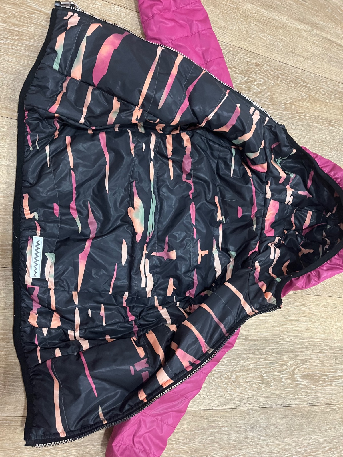 Top stav, ako nová. Vo vnútri je odnímateľná mikina. Farba je taká malinová. Rukávy si môžete nastaviť vyhrnutím. Bundička je naozaj perfektná. Celková dĺžka vpredu 42,5cm, vzadu 48cm, dĺžka rukáva...