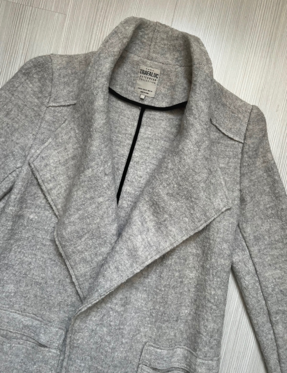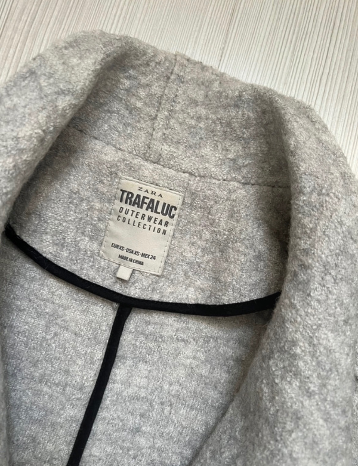 Zara šedy nepodšitý kabát veľ XS pár krát vzatý v peknom stave bez poškodenia. Voľný štýl.