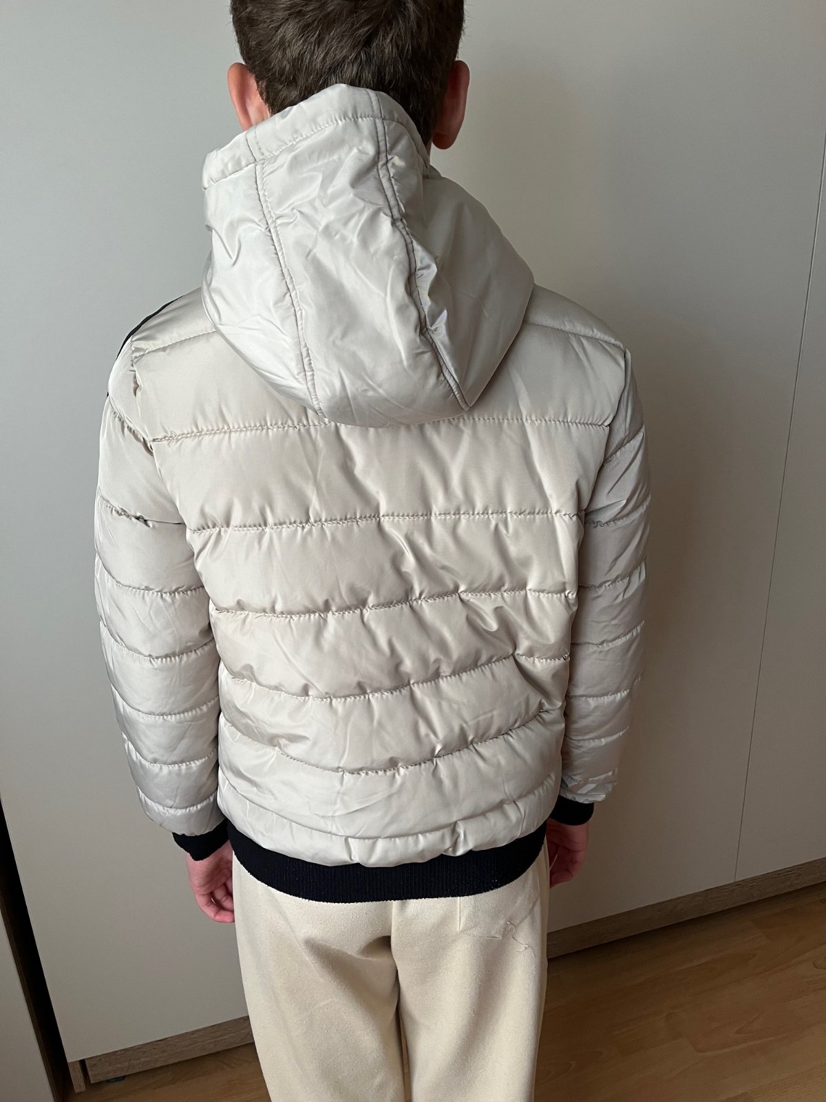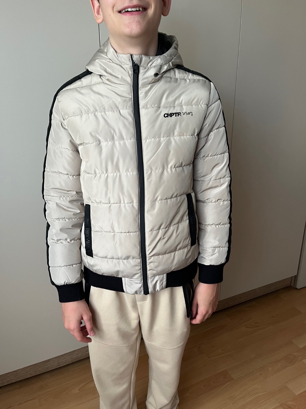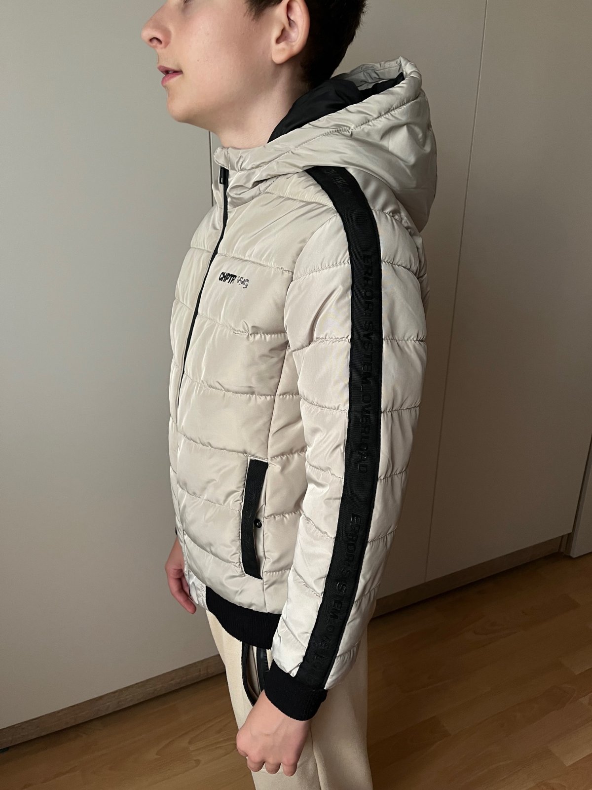Predám pár krát oblečenú bez poškodení chlapčenskú bundičku značky Takko vo veľkosti 146/152. Celková dĺžka od ramena je 59cm, šírka pod pazuchami je 49cm, dĺžka rukáva od ramena je 55cm.