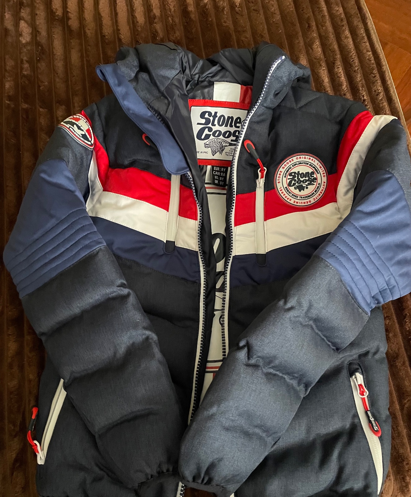 Krasna chlapcenska bunda kupena v Londyne, po zlave stala 65£