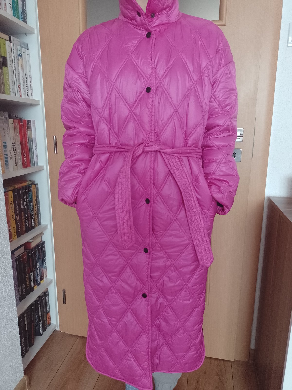 Perfektný prechodný kabát/ bunda v top stave, zapínanie na cviky, vysoký golier,s opaskom, PC vyše 40€!