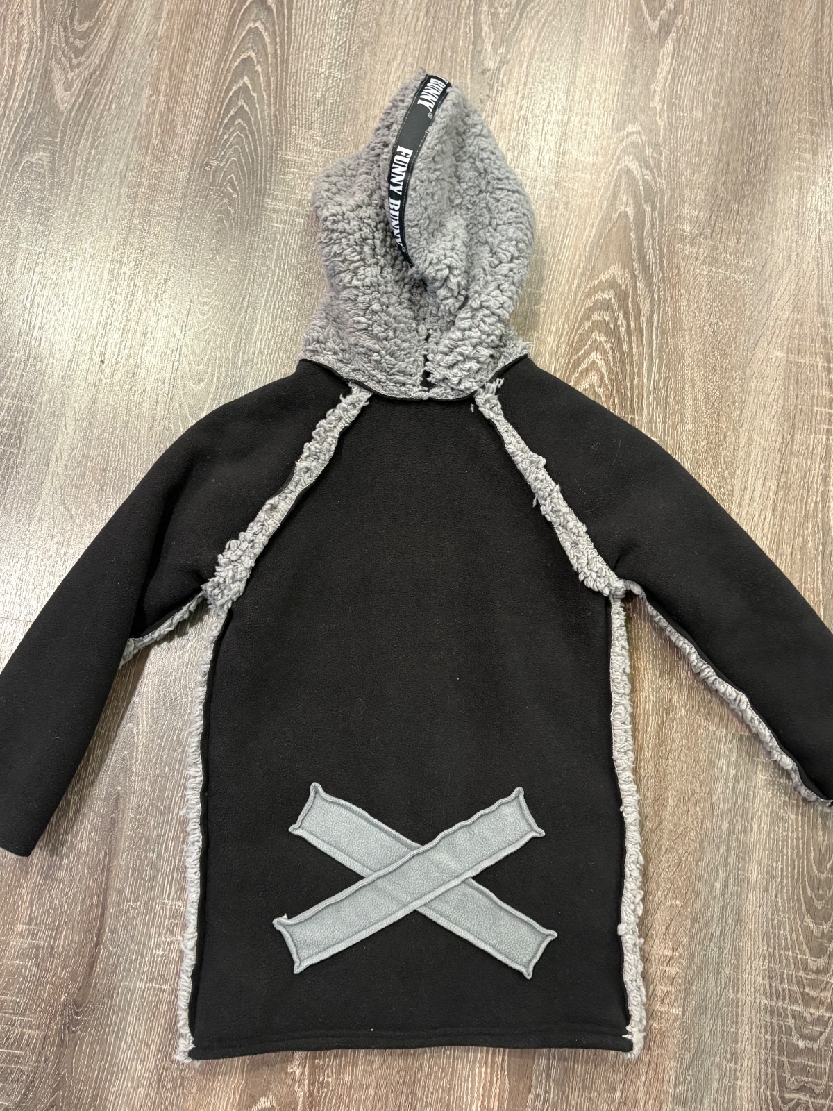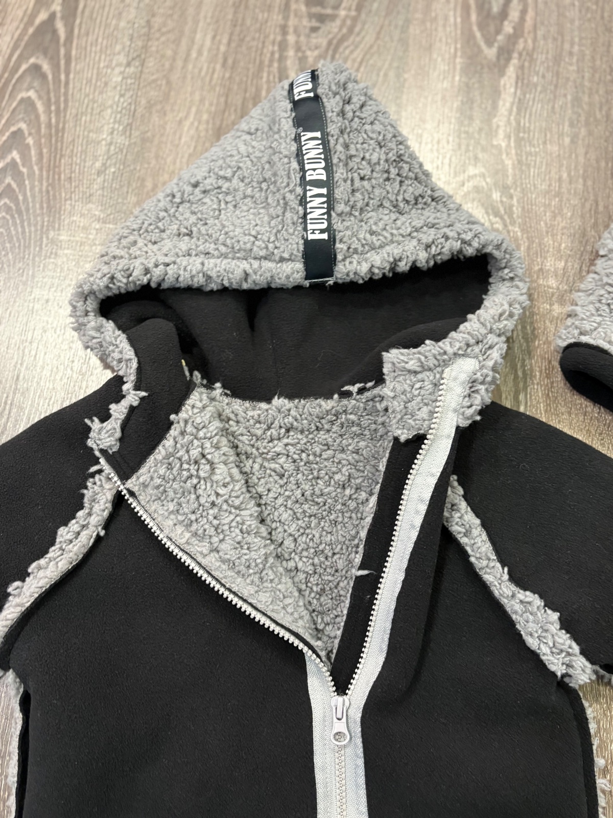 016.Funny Bunny hunaty kabatik s piskajucim vreckom, je rastuci nakolko sa rukav da podohnut …fakt krasny a ako novy,s kapucnou.Velkost 3-4 roky,dlzka je 56cm,dlzka rukava od krku je 48cm a sirka v podpazusi je od 38x2cm do 42x2cm