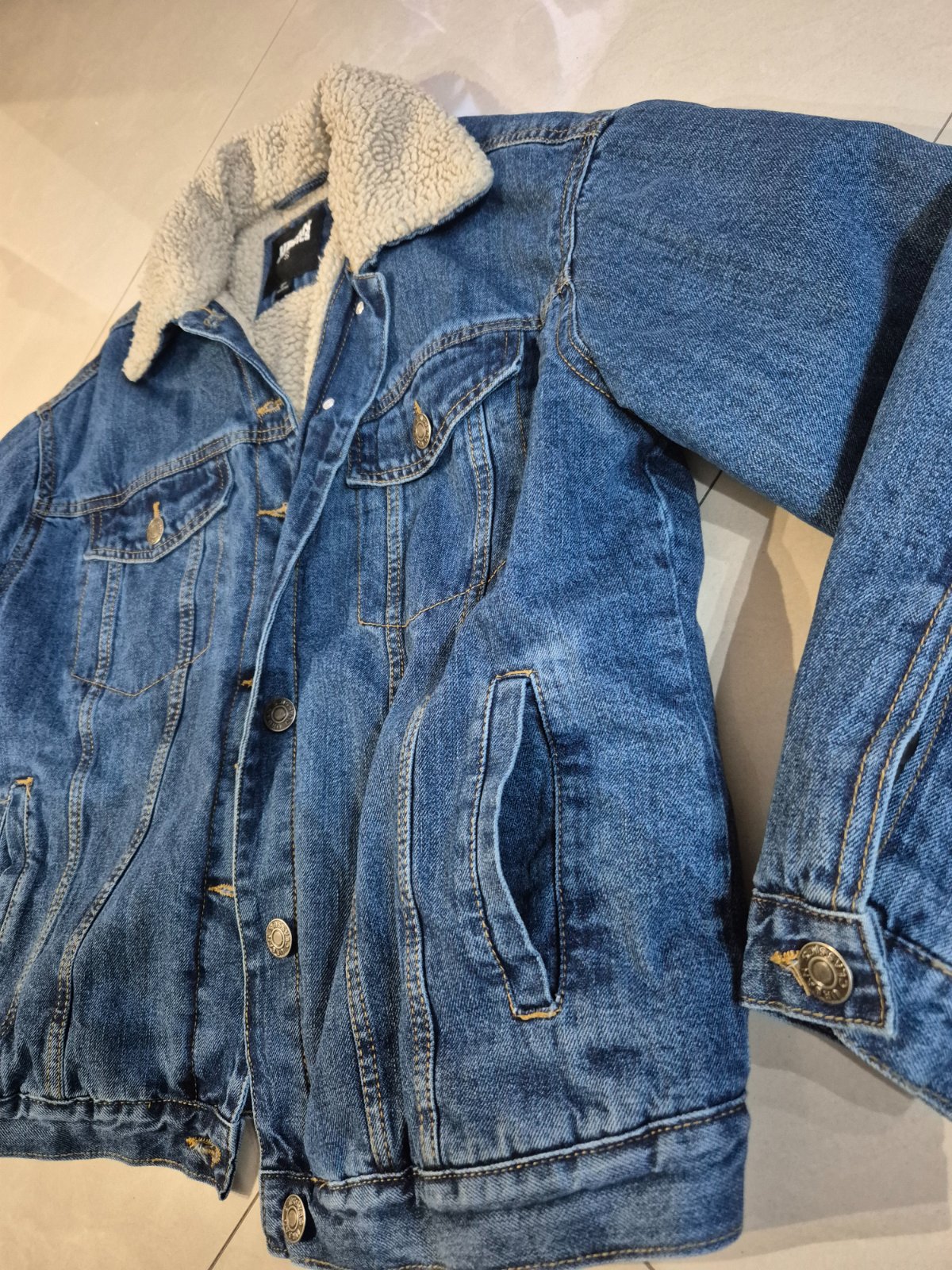 Podšitá riflová bunda s kožušinkou do chladnejšieho počasia. Oblečená max.2-3 razy. Ako nová. Je to veľkosť S, voľnejšieho strihu. V pohode môže byť aj ako M. V prípade záujmu premeriam.