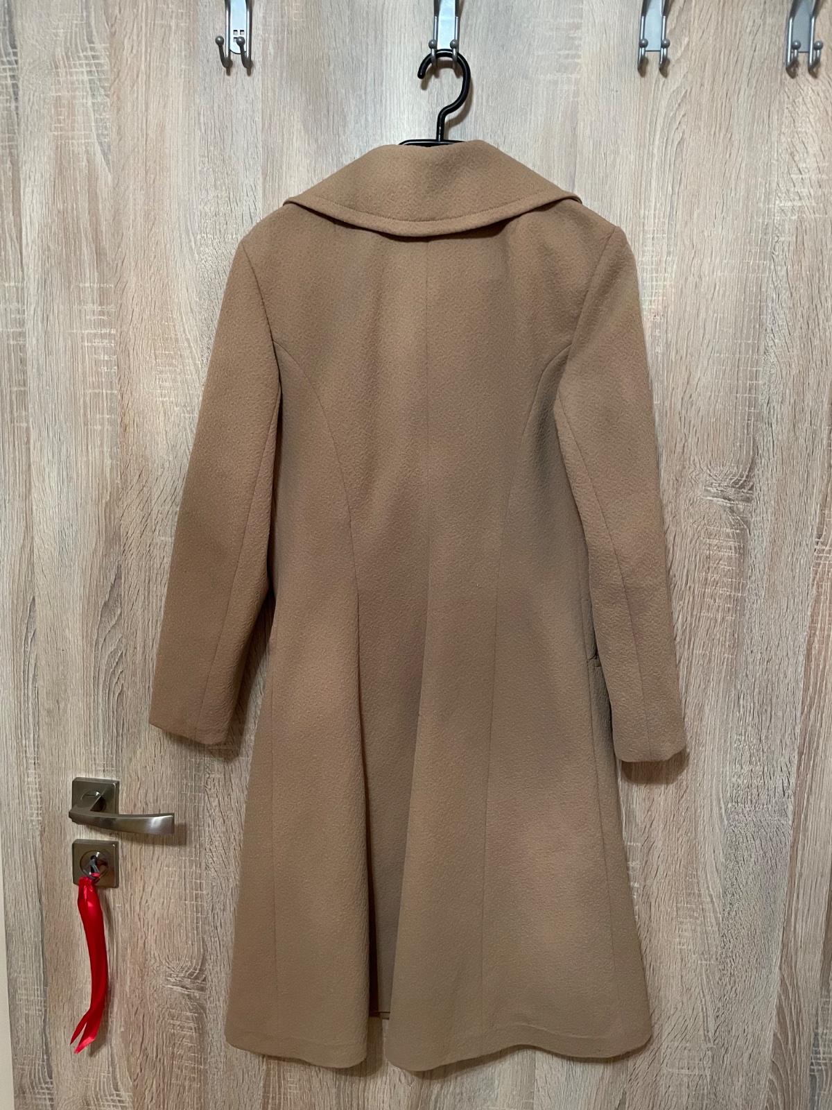 Párkrát vzaté, vidno hlavne z vnútornej strany (zatiahnutia, viď foto). Veľkosť XS, S, ale sedí aj na M. Farba krémová. Opasok nie je súčasťou predaja.