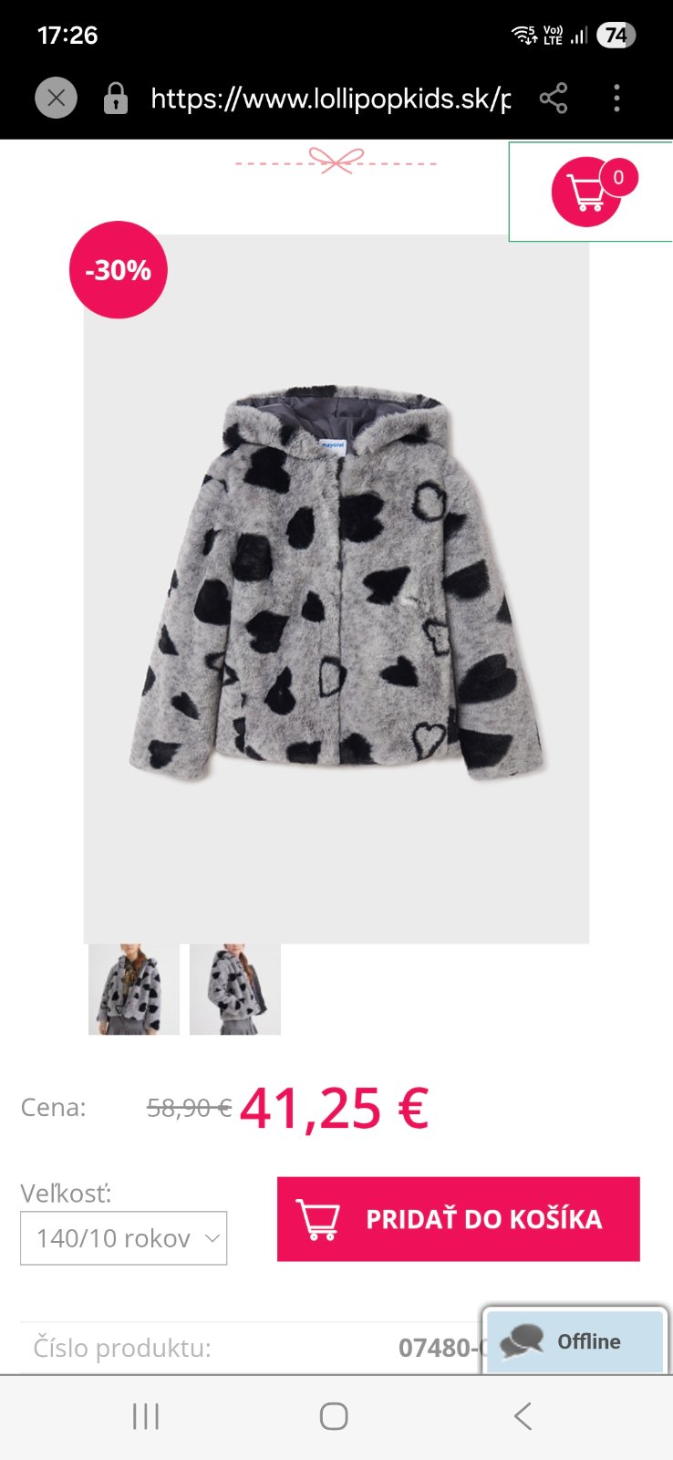 Nádherná bunda/ kabátik, veľmi teplý, pre dievčatko, veľkosť 140, top stav. Dĺžka 65cm Šírka 48 cm