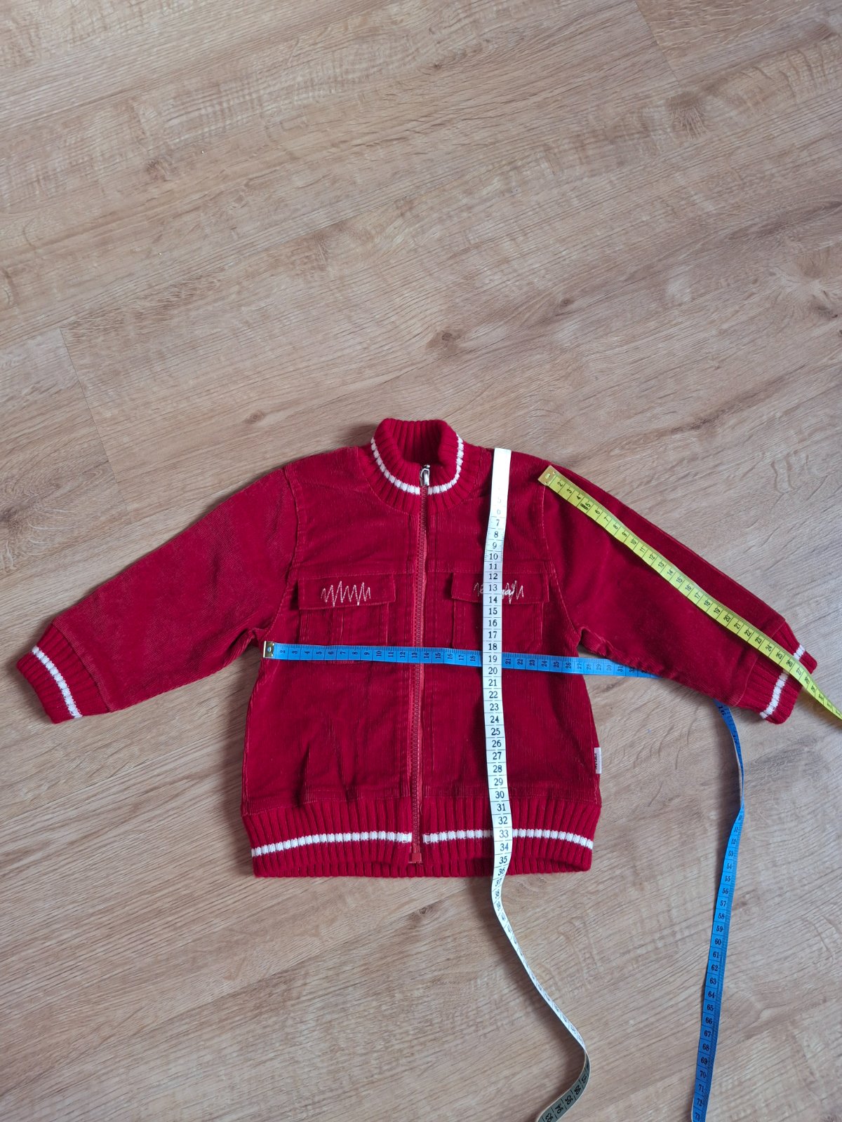 Bundička je bez poškodení,dlžka bundičky meraná od ramena-34cm,dlžka rukáva meraná od ramena-29,5cm,dlžka rukáva merana spod pazuchy-19,5cm,cena bez pošty