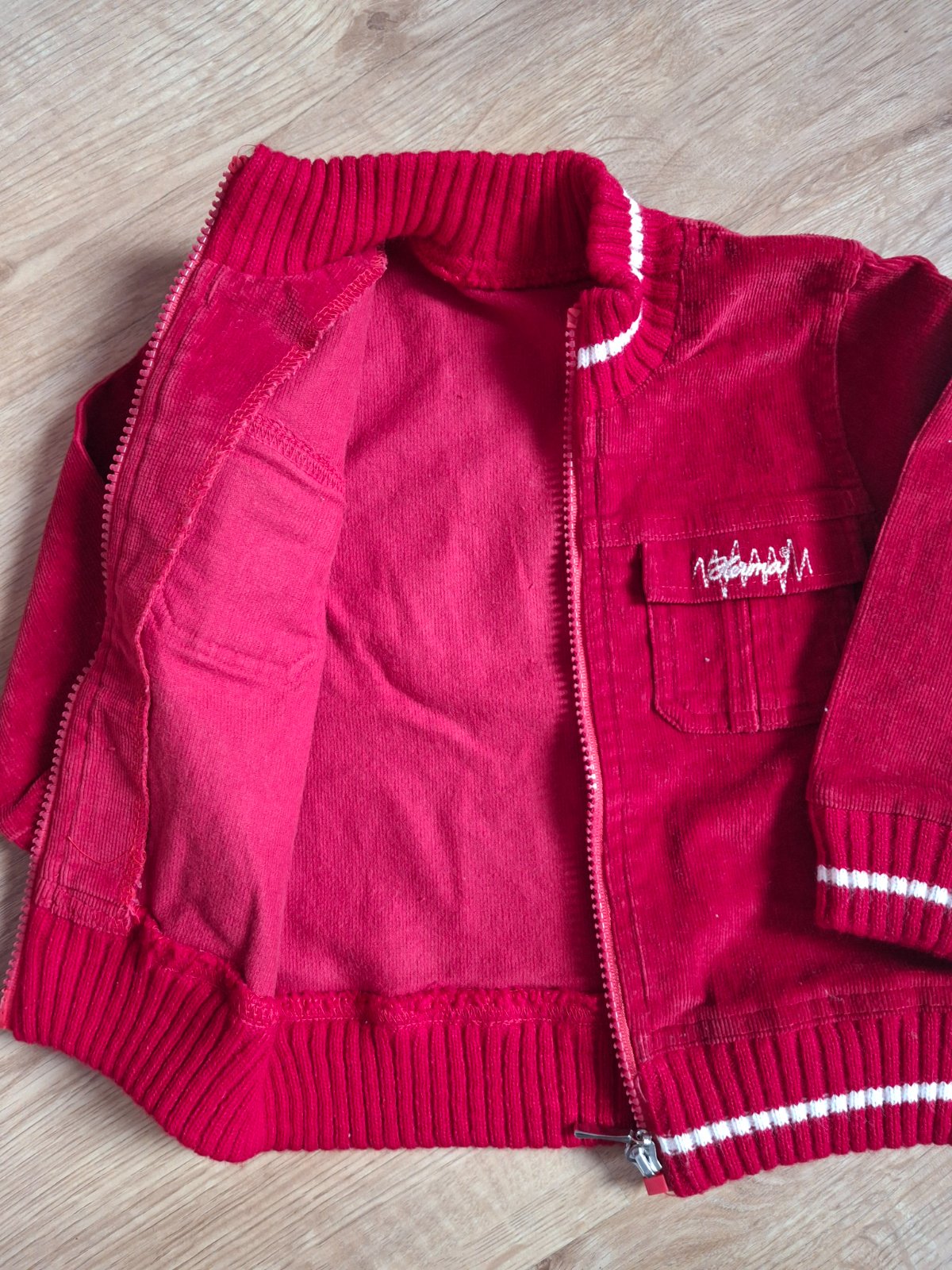 Predám frajerskú prechodnú bundičku malinovo-červenej farby.Pár krát oblečená.Dieťa v nej neprefúkne,nepreprší,je podšitá flisom.Má jeden kaz a to dierka na rukáve pri prešívaní,viď foto.Je to od n...
