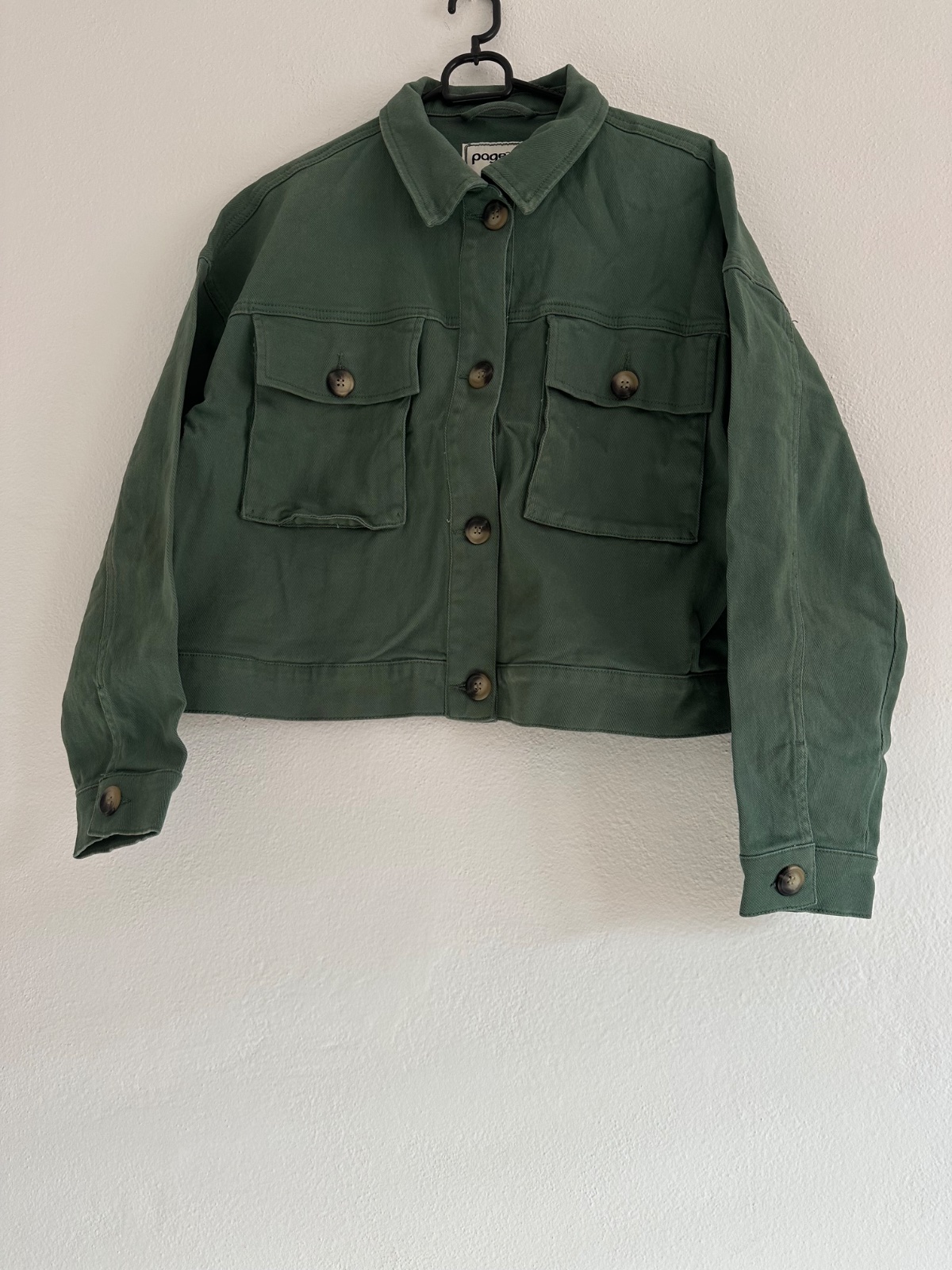 Krasna bunda tmavozelena kupena v butiku veľkosť 42