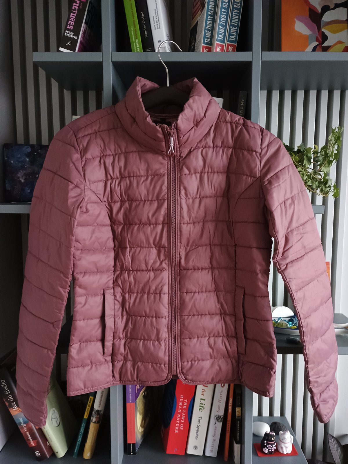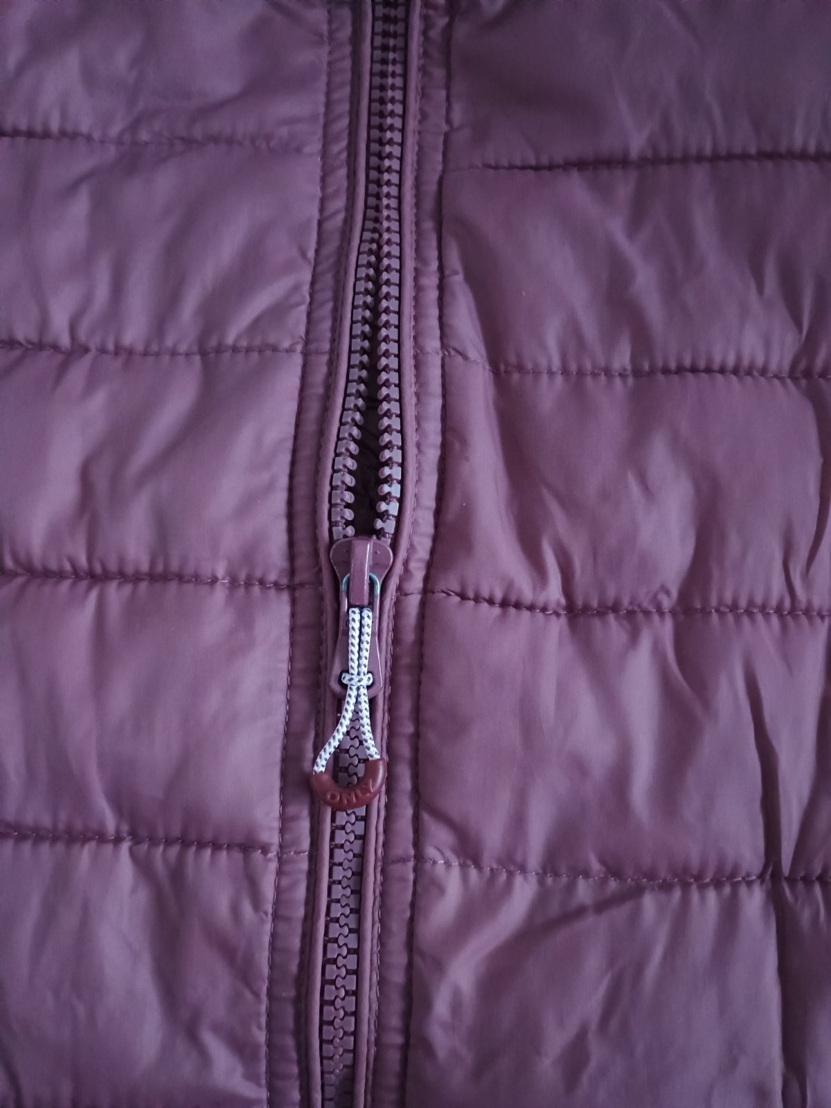 Prechodný prešívaný kabátik v ružovohnedej farbe, zapínanie na zips, veľ. M, nosená veľmi málo, vo výbornom stave a bez vád. Je bez kapucne, vhodná na časté cestovanie, stanovanie, ale aj bežne do mesta. Má malý vak, do ktorého sa dá zložiť ako spacák. Rozmery: cez prsia 48 cm, celková dĺžka 60 cm, rukáv z vonkajšej strany 62 cm